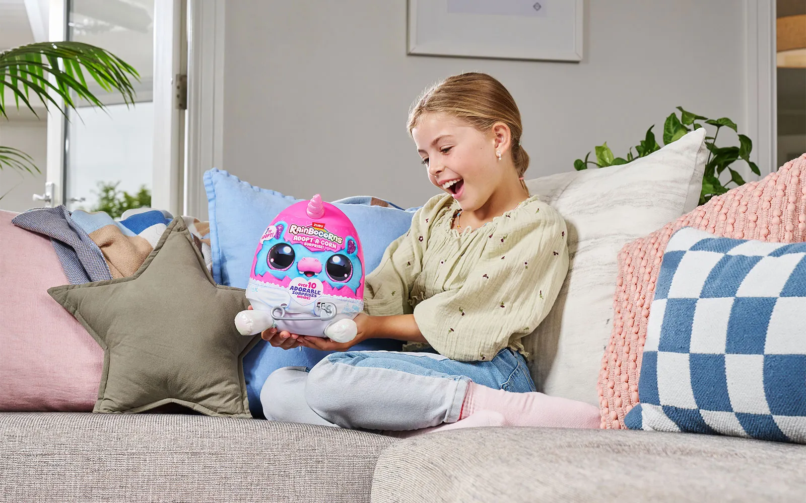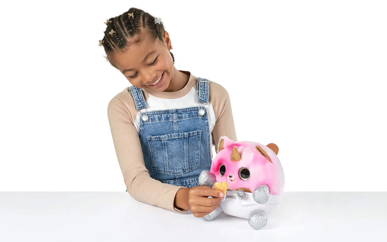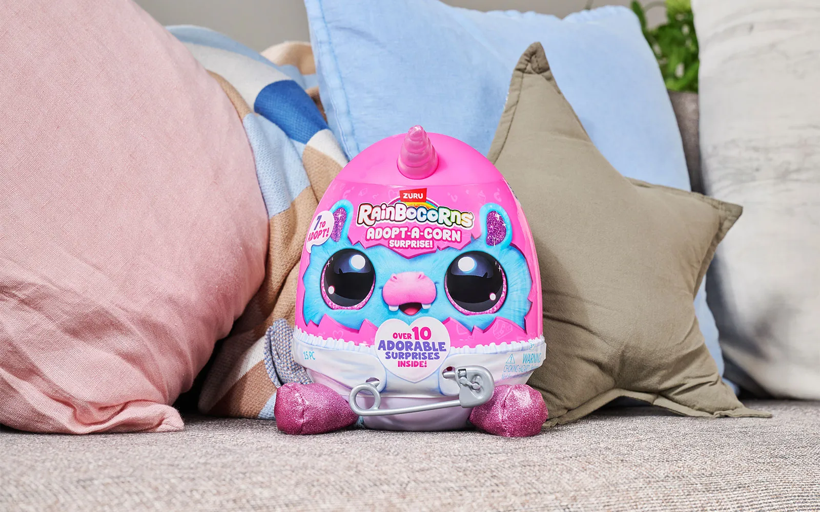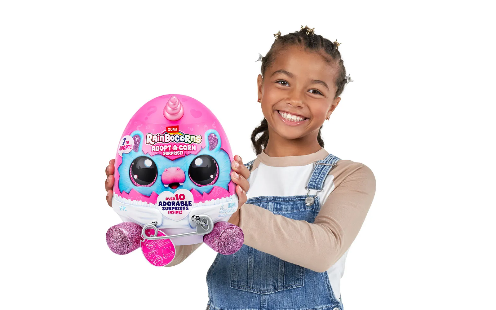 Set sadrži 1x Rainbocorns Adopt-a-corn jaje iznenađenja, 1x Adopt-a-corn plišanu životinjicu, 1x jaje za pohranu pelena, 1x dude, 1x potvrdu o usvajanju, 10x naljepnica, 1x peel and reveal srce, 1x kolekcionarski vodič. Moguće je skupiti 7 različitih plišanih životinja Rainbocorns Adopt-a-corn. Svako jaje u sebi skriva više od 15 prekrasnih iznenađenja.