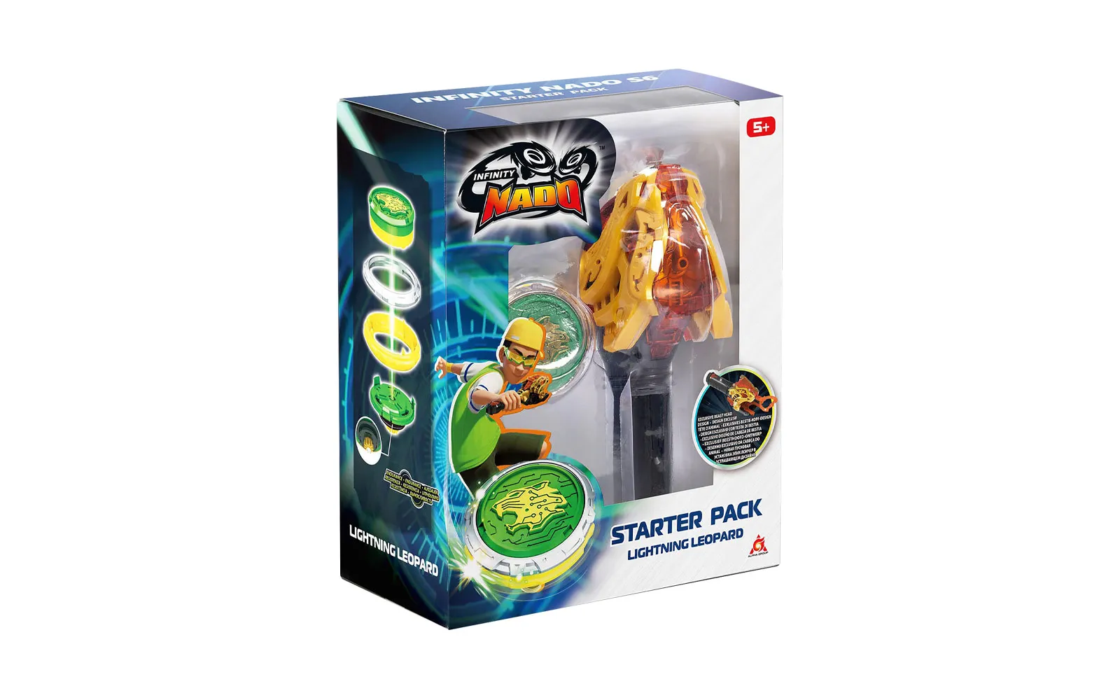 Postanite neodoljivi uz Infinity Nado Starter - Lighting Leopard i otkrijte potpuno novi dizajn na lanseru u obliku zvijeri. Lanser pruža borbenu moć i brzinu za pobjedu u svim dvobojima! Igračka je primjerena za djecu od 5 godina starosti.