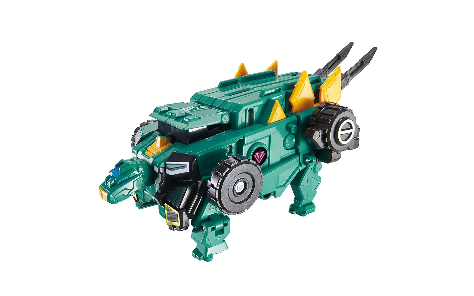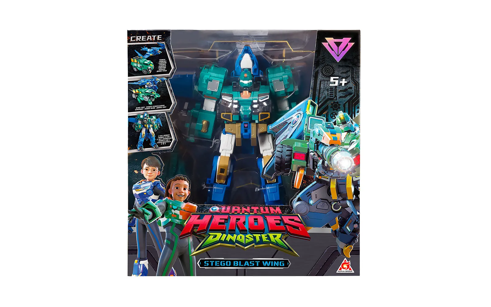 Otkrijte nevjerojatan svijet dinosaurusa s ekipom Dinoster! Kroz svoje avanture, četiri prijatelja svladavaju velike izazove kako bi zaštitili dinosaure. Dobrodošli u tim Dinoster! Istražite svijet dinosaurusa i krenite u avanturu s velikim Stego Blast Wingom, Dinoster. Proučavajte i spašavajte dinosaure s velikim Stego Blast Wingom! On je hrabar i lako se povezuje s dinosaurima. Transformacijski robot može postati dino kamion, dino robot ili 2-u-1, ovisno o vašem izboru. Možete ga lako pretvoriti u auto ili dinosaura. Robot ima i mnogo pomičnih dijelova i kompatibilan je s ostalim setovima. Visina robota je 38,5 cm.