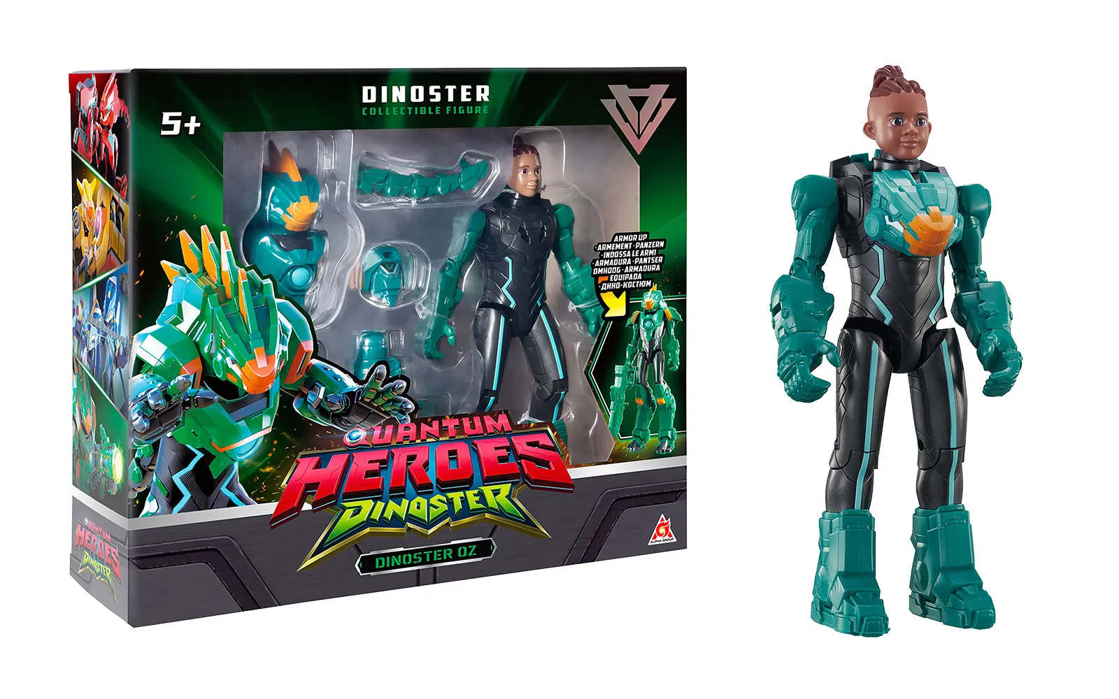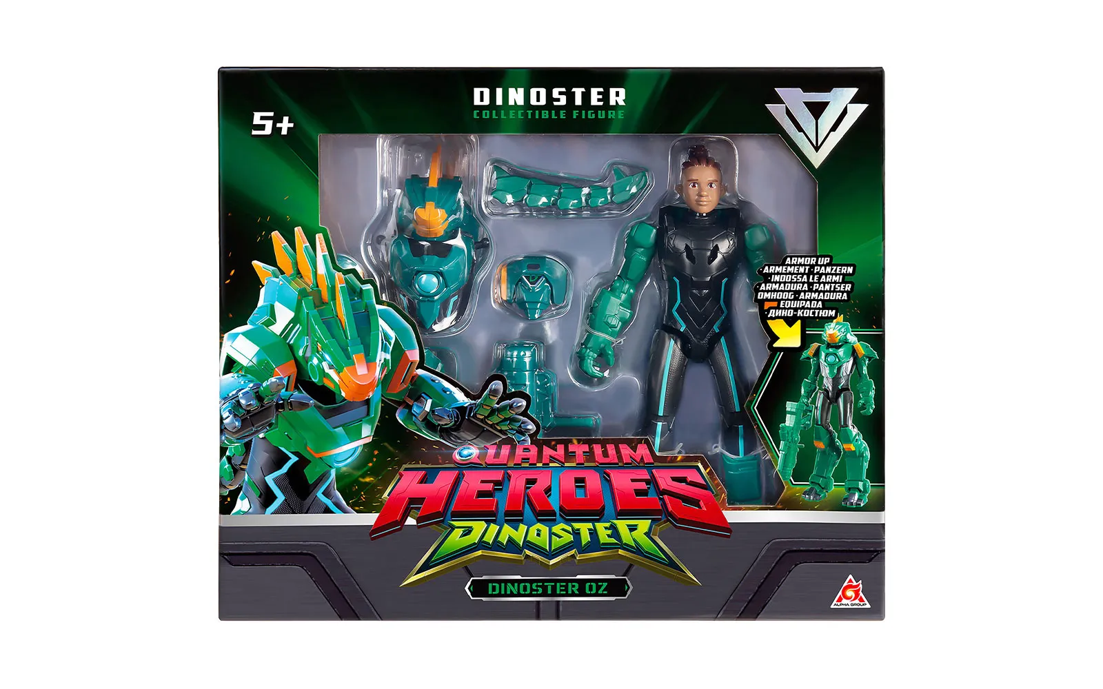 Otkrijte nevjerojatan svijet dinosaura s timom Dinoster! Kroz svoje avanture, četiri prijatelja svladavaju velike izazove kako bi zaštitili dinosaure. Dobrodošli u tim Dinoster! Istražite svijet dinosaura i krenite u avanturu s figuricom Oz, visine 20 cm, koja dolazi s priloženom opremom. Figurica ima mnogo pokretnih dijelova. Visina figurice je 20 cm. Oz je zabavan paleontolog. Jednostavno podiže raspoloženje tima. I on je odgovoran da tim ostane jak, elegantan i prijateljski nastrojen. Figurica Oz visoka 20 cm ima 2 oblika igre: u Dino odijelu i bez njega. Dino odijelo omogućuje vam da postanete brži i jači. Opremite i aktivirajte Dino odijelo s dodatnim dijelovima oklopa.