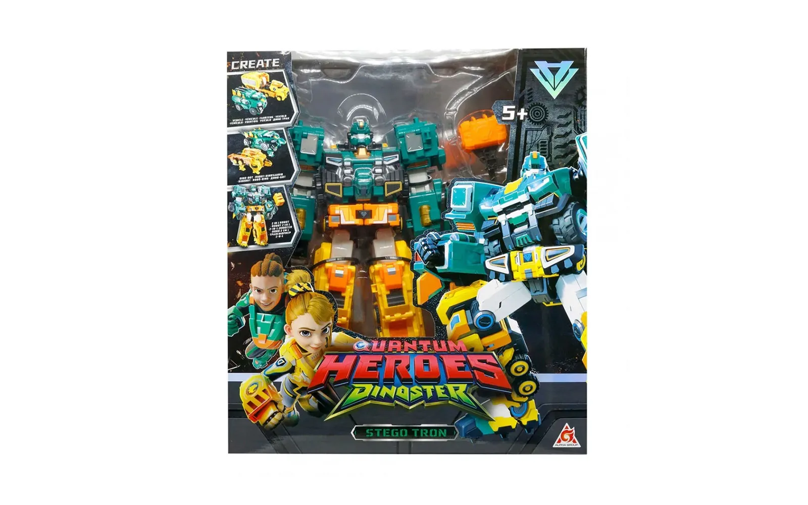 Otkrijte nevjerojatan svijet dinosaura s ekipom Dinoster! Kroz svoje avanture četiri prijatelja prevladavaju velike izazove kako bi zaštitili dinosaure. Dobrodošli u tim Dinoster! Istražite svijet dinosaura i upustite se u avanturu s velikim raptorom Stegom Tronom, Dinoster. Istražuj i spašavaj dinosaure s velikim raptorom Stegom Tronom! Hrabar je i lako se poveže s dinosaurima. Transformacijski robot može postati dino kamion, dino robot ili 2-u-1, ovisno o vašem izboru. Lako ga možete pretvoriti u automobil ili dinosaura. Robot također ima mnogo pokretnih dijelova i kompatibilan je s ostalim setovima. Visina robota je 38,5 cm.