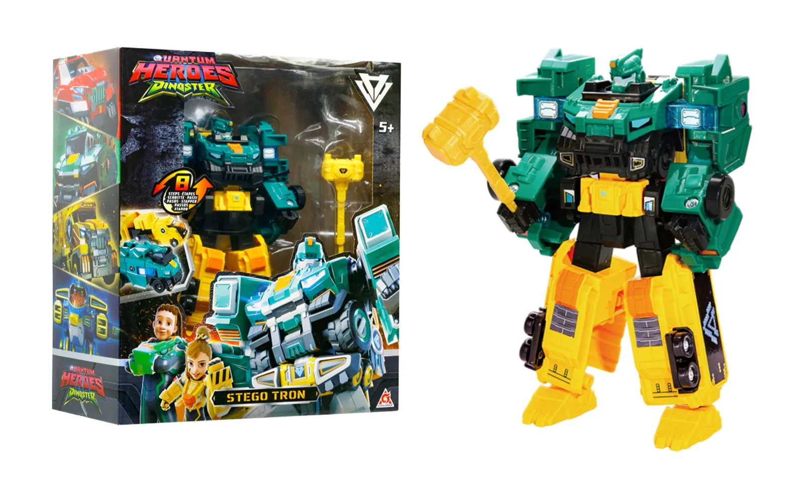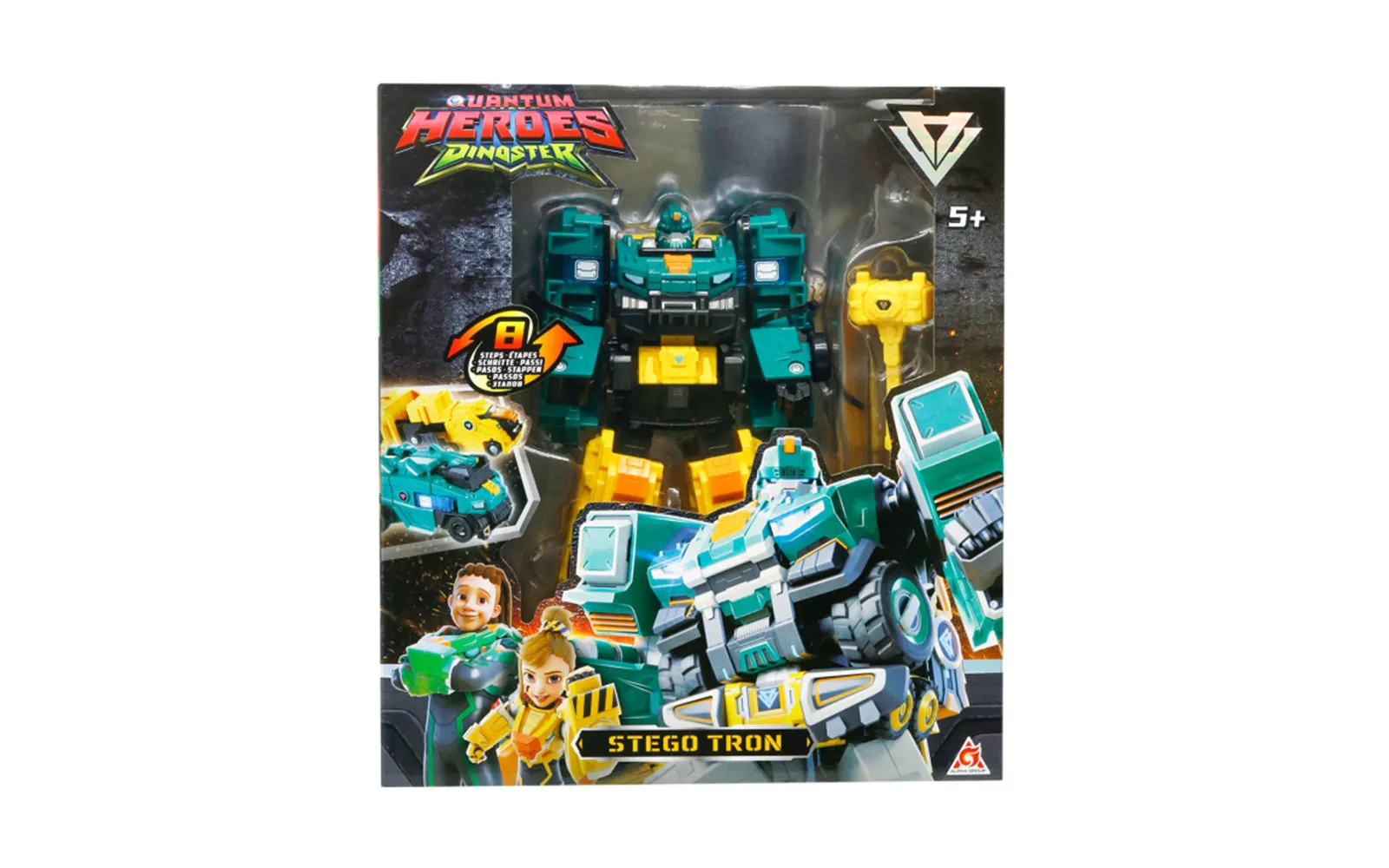 Otkrijte nevjerojatan svijet dinosaura s ekipom Dinoster! Kroz svoje avanture, četiri prijatelja prevladavaju velike izazove kako bi zaštitili dinosaure. Dobrodošli u tim Dinoster! Istražite svijet dinosaura i krenite na avanturu s malim stegom Tronom, Dinoster. Istraživajte i spašavajte dinosaure s malim stegom Tronom! Robot-transformer Stego Tron 2 u 1 sastoji se od više od 30 pokretnih dijelova. Robota Dino promijenite u kamion s dinosaurima u samo nekoliko jednostavnih koraka. Skidivo oružje možete ponovno sastaviti prema svom stilu borbe - kvantni mačevi ili kvantni luk. Uz pozadinu u kutiji rekreirajte scene iz crtanih filmova. Komplet uključuje 22 cm visokog robota-transformera, dodatak, naljepnice i upute. Igraći set robota-transformera 2 u 1 izrađen je od visokokvalitetne plastike.