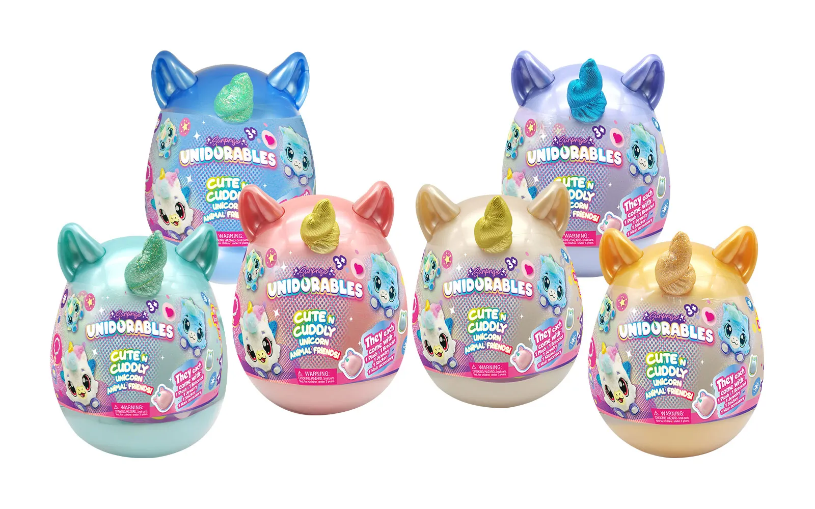 Unidorables su preslatni jednorozi, skriveni u čarobnom jajetu, punom iznenađenja! Svako jaje sadrži plišanog jednoroga i fantastična iznenađenja. Dostupno je 6 različitih dizajna za kolekcioniranje i igru.