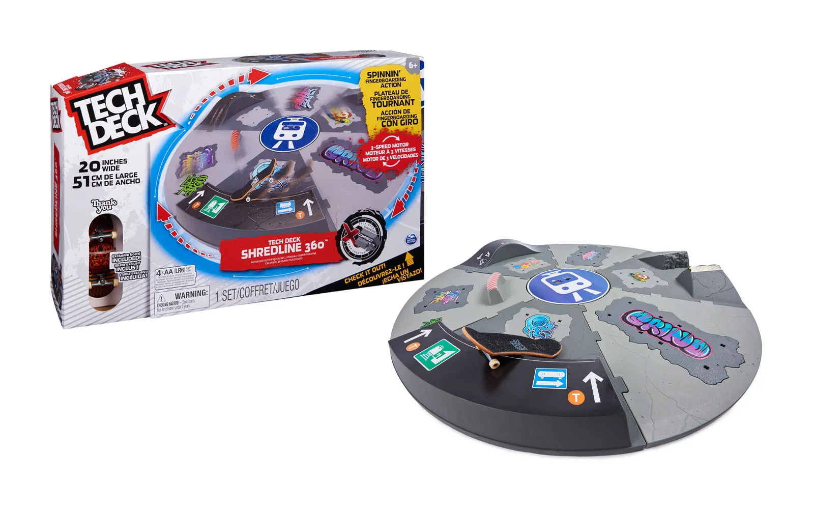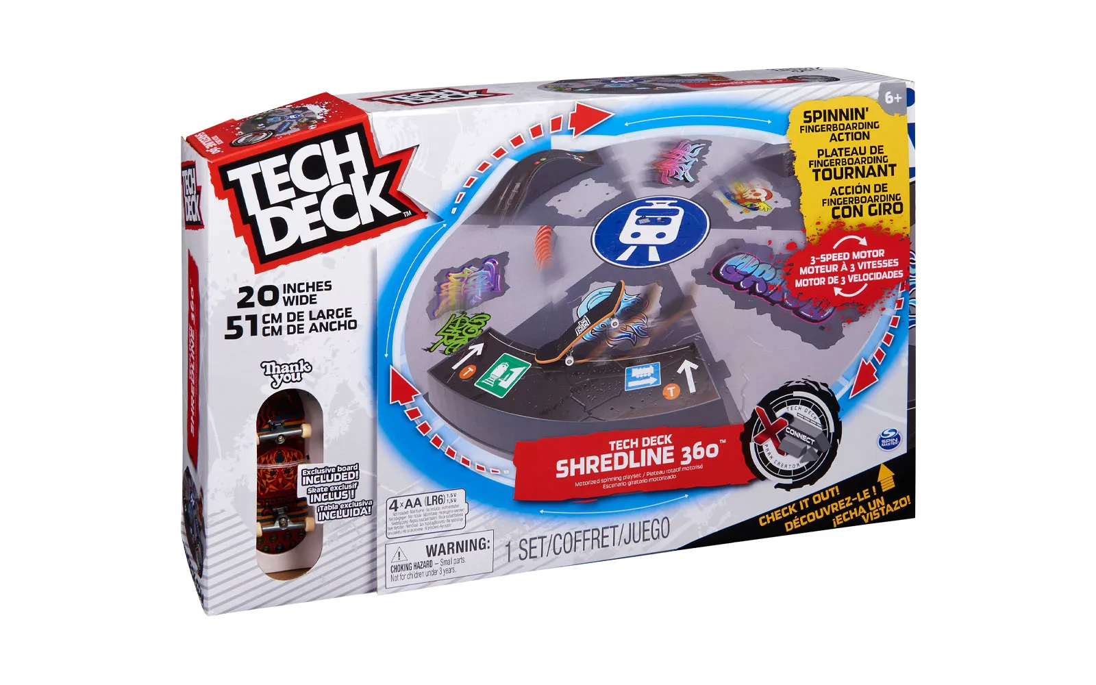PARK ZA SKATEBOARD SHREDLINE 360, TECH DECK! Pripremite se za nezaboravnu zabavu s skateboardom na Tech Deck Shredline 360! Ovaj vrhunski skateboard sadrži motoriziranu rampu koja vam omogućuje da uronite u svijet skateboarda i izazovete svoje prijatelje u nevjerojatnim trikovima! STVORITE SVOJE VLASTITE KOMBINACIJE: Koristite ploče za prepreke na fingerboardu i X-konektore za postavljanje različitih kombinacija i lako svladavanje prepreka. S Shredlineom 360 možete prilagoditi svoj park kako želite i kreirati jedinstvene izazove koji odgovaraju vašim vještinama. KONAČNI POLIGON ZA VJEŠTINE: Promijenite brzinu i smjer na konačnom poligonu s preprekama. Usporite da biste usavršili svoje vještine ili se okrenite kad izazivate prijatelje na nezaboravne vožnje! Park Shredline 360 omogućuje beskrajne zabave i učenje novih trikova. SADRŽAJ SETA: motorizirana rampa Tech Deck, ploče za prepreke i X-konektori, super cool skateboard Thank You, Tech Deck. Set Parka za skateboard Shredline 360 idealan je izbor za sve mlade skateboardere koji žele istražiti svijet skateboarda i zabaviti se stvarajući nove izazove. Pripremite se za akciju i unaprijedite svoje vještine! Prikladno za djecu od 6 godina nadalje!