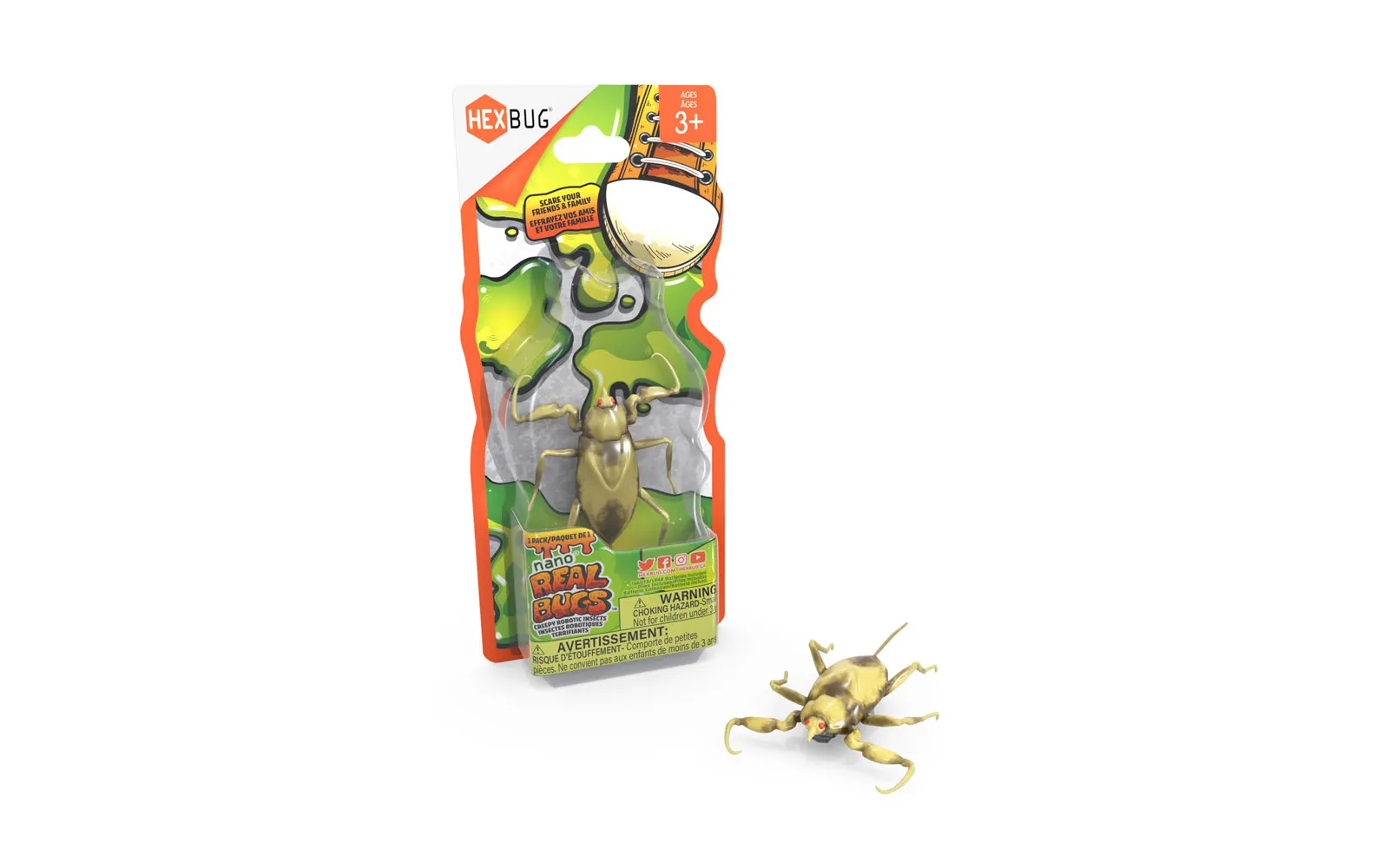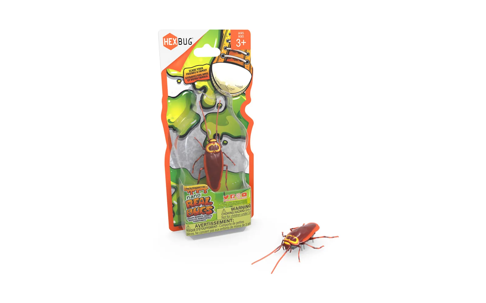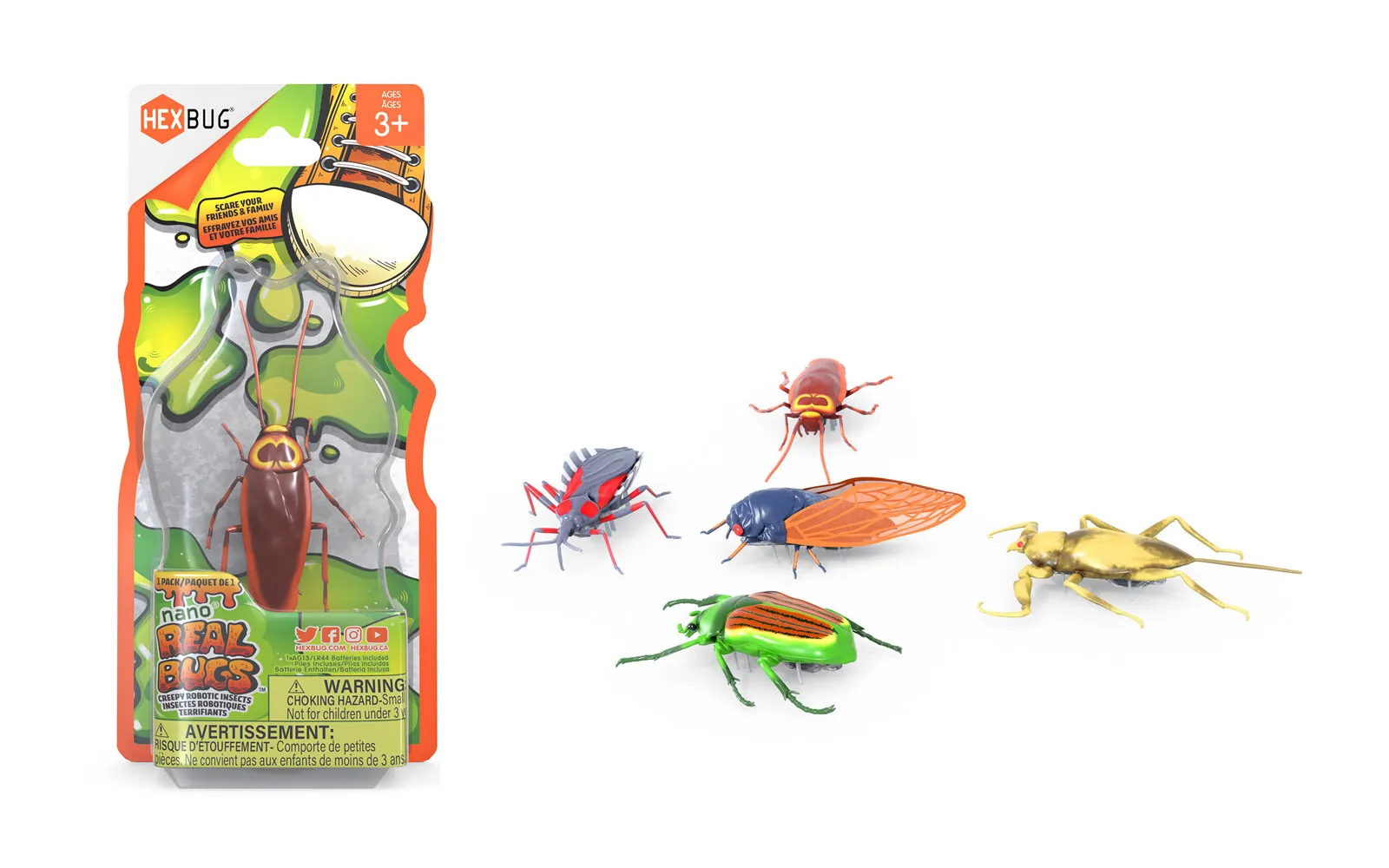 Nano Real Bugs Hexbug. Ovo brzo, jezivo stvorenje puže uokolo koristeći patentiranu nano® tehnologiju vibracija i dizajnirano je da izgleda poput pravih kukaca. Buba je savršena za šale jer set uključuje cikadu, žohara, japansku stjenicu, vodenog škorpiona ili stjenicu ubojicu. Uključite bubu jednostavnim gumbom i gledajte kako samostalno manevrira oko prepreka. Artikl radi na baterije tipa 3x AG13/LR44 koje su priložene. Članak je prikladan za djecu od 3 godine starosti.