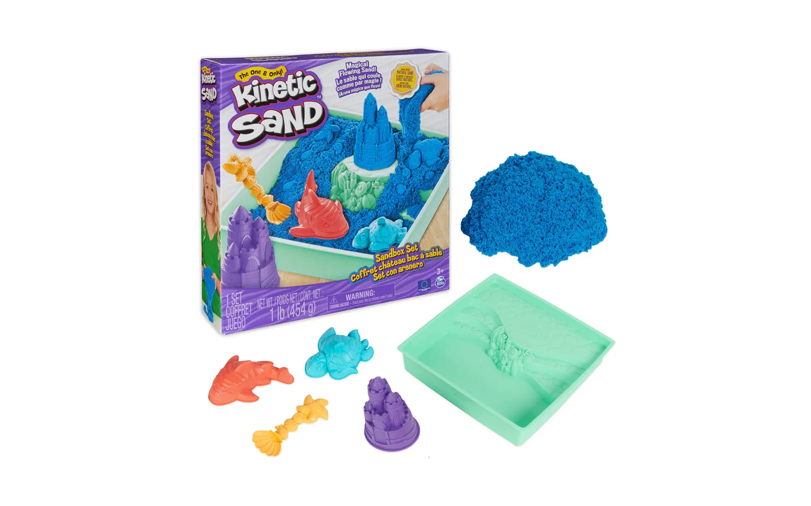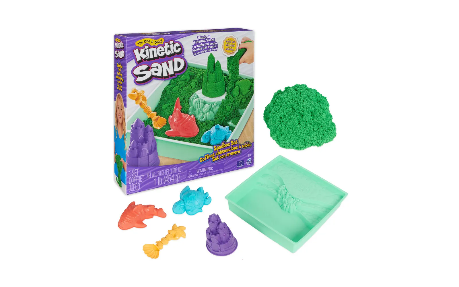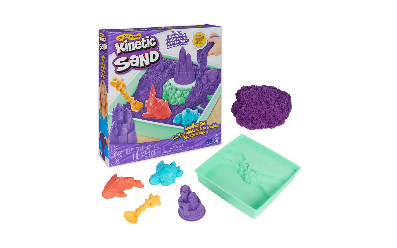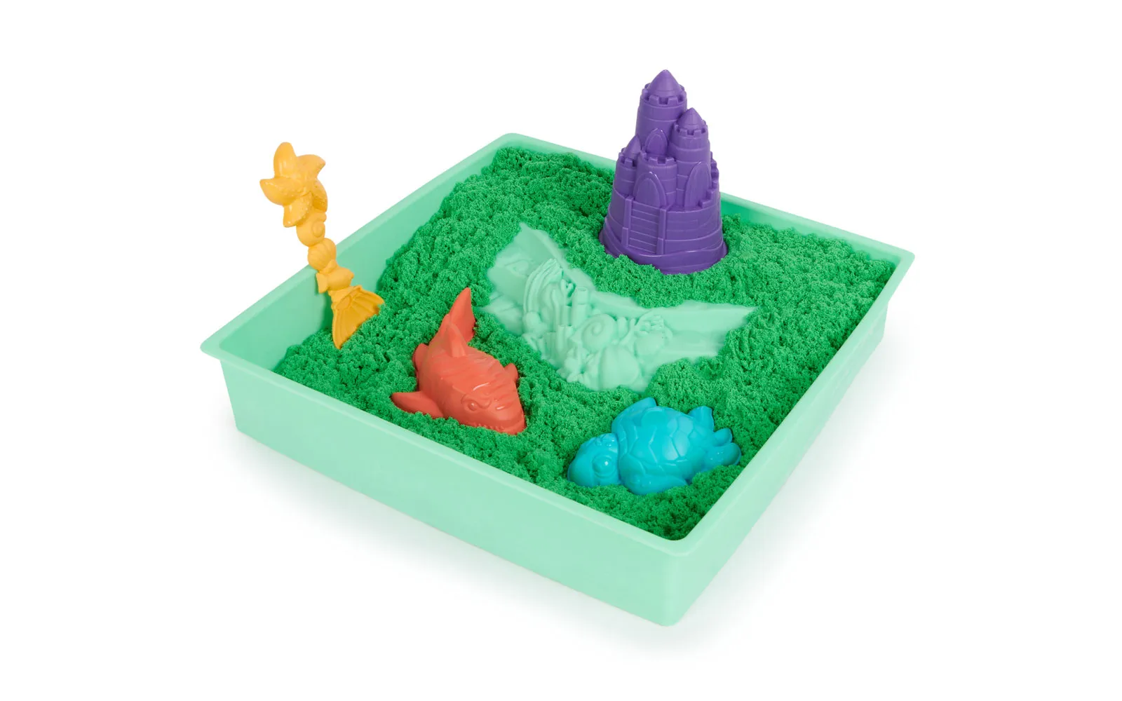 Kinetički pijesak Kinetic Sand Sandbox by Spin Master odličan je za male obožavatelje oblikovanja pijeska i izrade umjetnina od pijeska. Set sadrži magični kinetički pijesak koji se lako oblikuje, a iz kojeg djeca mogu stvarati prekrasne pijesane skulpture, dvorce i oblike. Također uključuje podlogu na kojoj djeca mogu stvarati svoje umjetnine i različite alate za oblikovanje. Kinetički pijesak je vrlo čaroban i očarat će vašu djecu, budući da se ne lijepi i ne suši, pa su mogućnosti za igru i stvaranje beskrajne! Potiče kreativnost djece i omogućuje im da puste mašti na volju. Kinetički pijesak izrađen je od 100% prirodnog pijeska (bez dodataka) i ne sadrži pšenicu, gluten i kazein. Pjesak kinetičkog pijeska proizveden je u Švedskoj. Set sadrži: 1 kinetički pijesak u ljubičastoj, plavoj ili zelenoj boji, 1 podlogu za igru te razne alate za oblikovanje. Igračka je prikladna za djecu od 3. godine starosti nadalje.