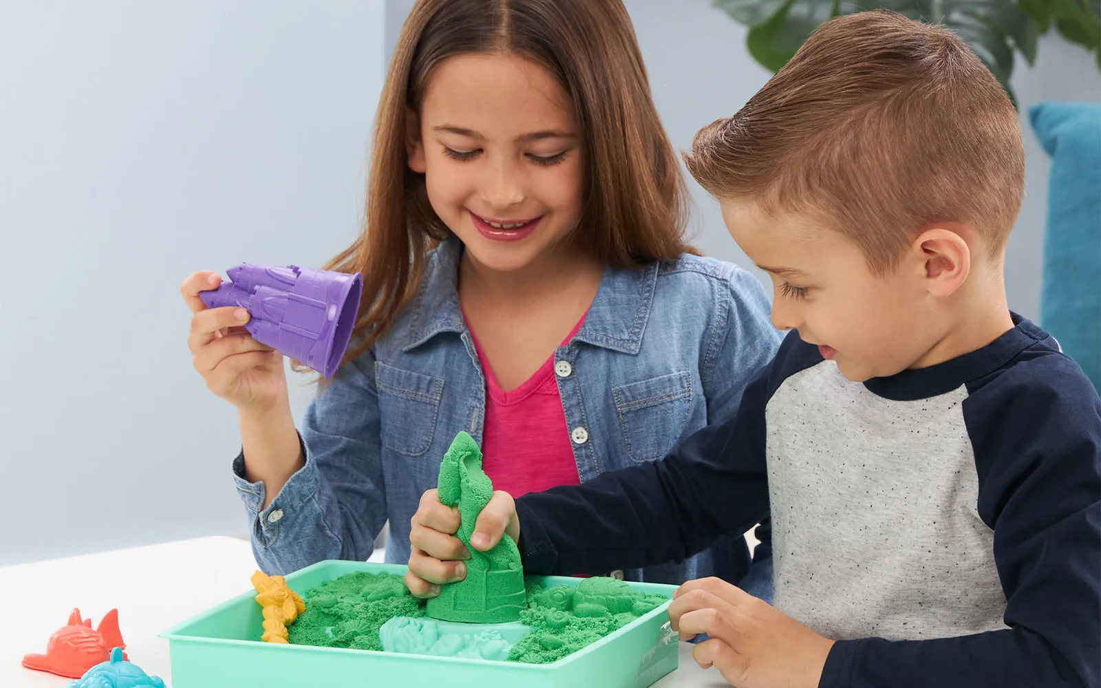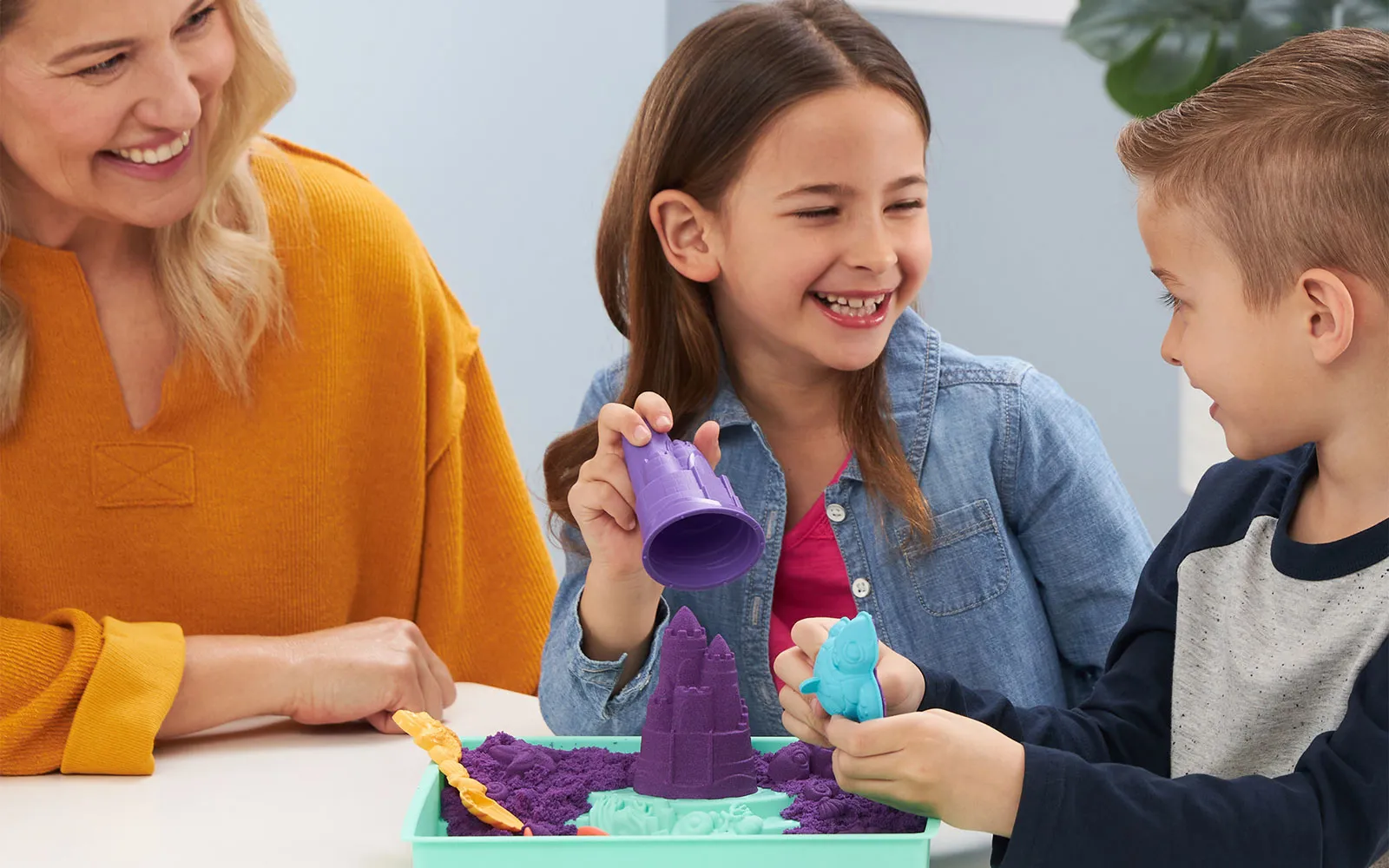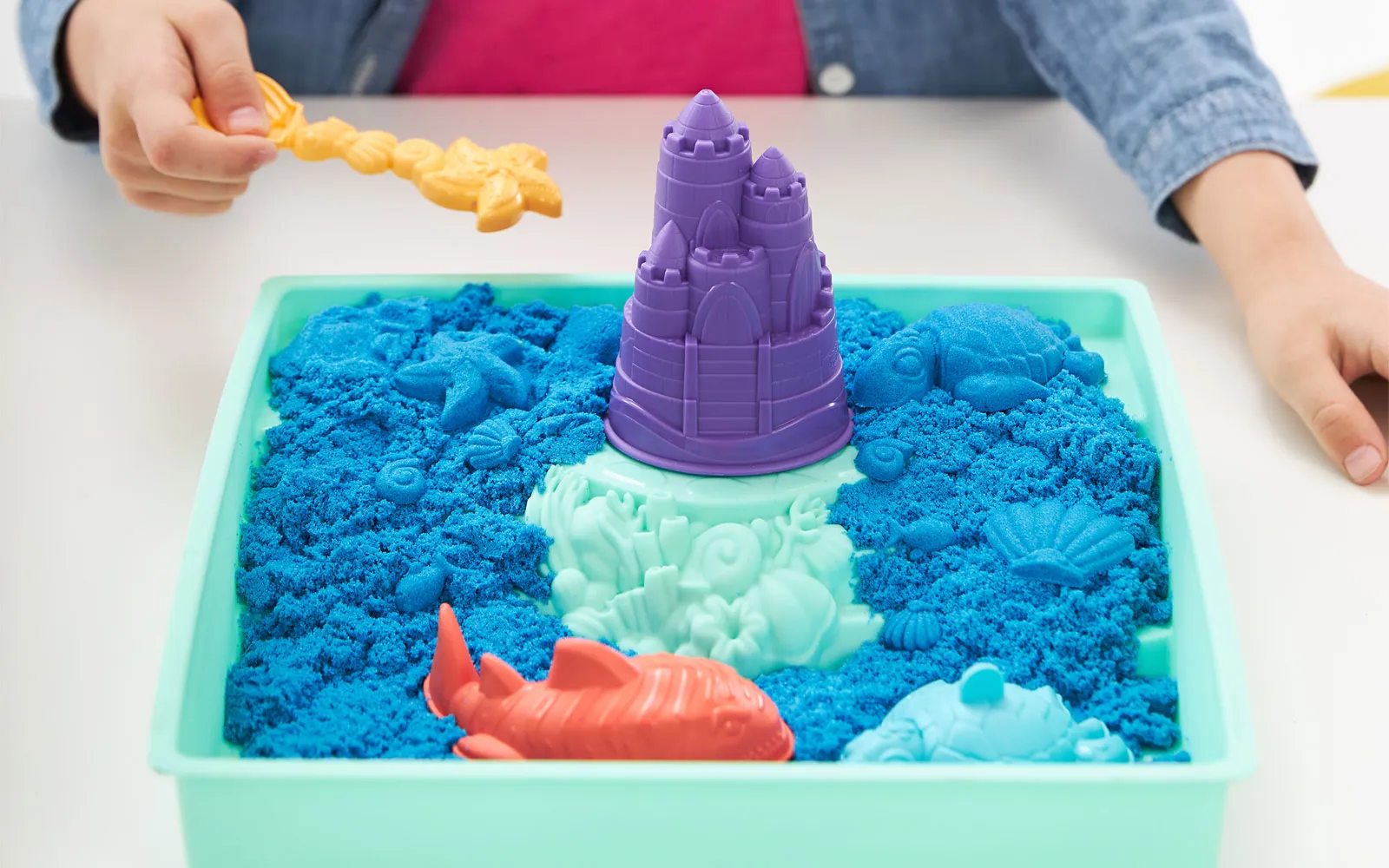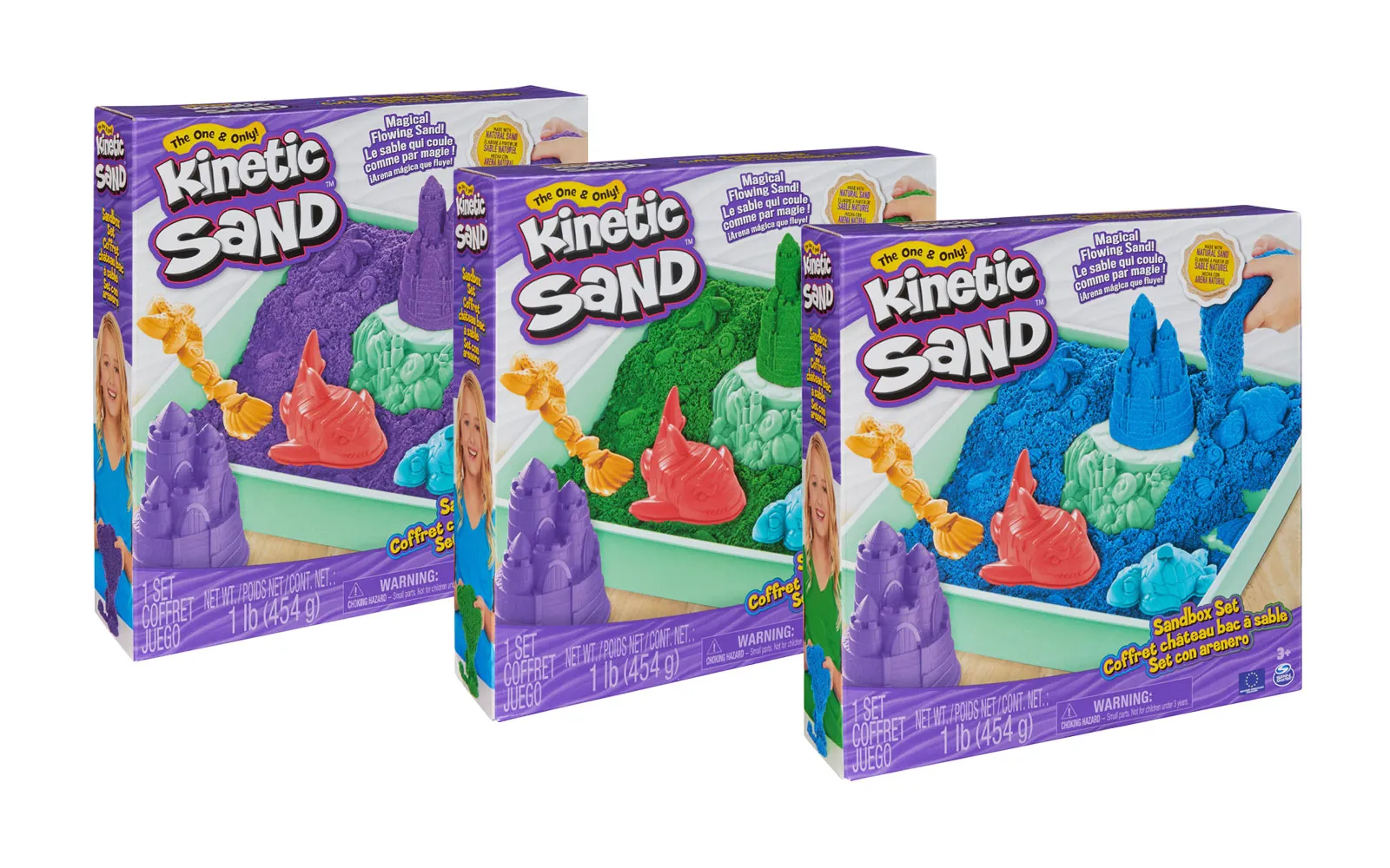 Kinetički pijesak Kinetic Sand Sandbox by Spin Master odličan je za male obožavatelje oblikovanja pijeska i izrade umjetnina od pijeska. Set sadrži magični kinetički pijesak koji se lako oblikuje, a iz kojeg djeca mogu stvarati prekrasne pijesane skulpture, dvorce i oblike. Također uključuje podlogu na kojoj djeca mogu stvarati svoje umjetnine i različite alate za oblikovanje. Kinetički pijesak je vrlo čaroban i očarat će vašu djecu, budući da se ne lijepi i ne suši, pa su mogućnosti za igru i stvaranje beskrajne! Potiče kreativnost djece i omogućuje im da puste mašti na volju. Kinetički pijesak izrađen je od 100% prirodnog pijeska (bez dodataka) i ne sadrži pšenicu, gluten i kazein. Pjesak kinetičkog pijeska proizveden je u Švedskoj. Set sadrži: 1 kinetički pijesak u ljubičastoj, plavoj ili zelenoj boji, 1 podlogu za igru te razne alate za oblikovanje. Igračka je prikladna za djecu od 3. godine starosti nadalje.