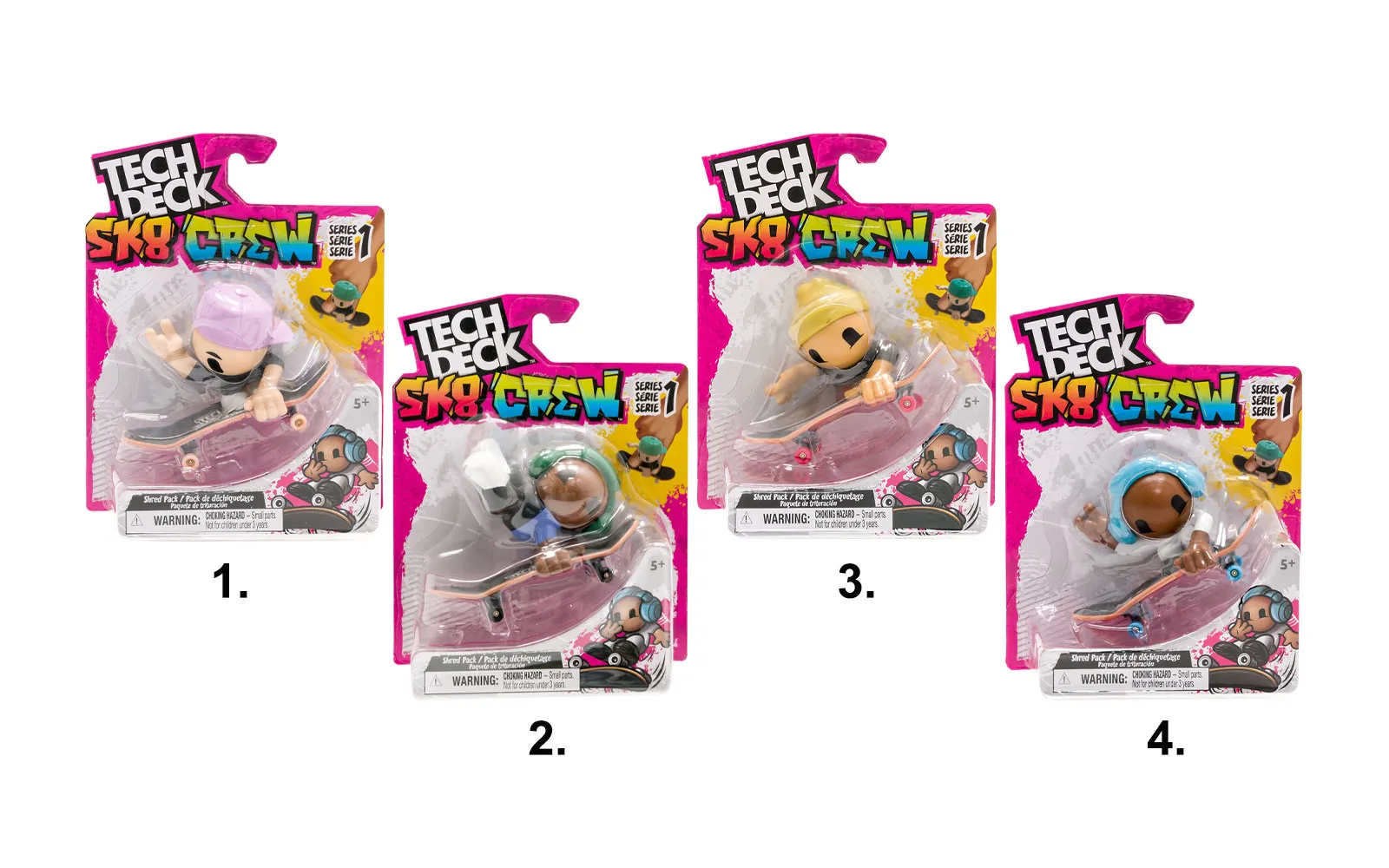 Set koturaljki s figuricom, Sk8 Crew, Tech Deck, Spin Master. Sa šest figurica Sk8 Crew koje možete sakupiti, poboljšajte svoje trikove i usavršite se u ollies i power slideu. Skenirajte QR kodu i osvojite sve trikove koje nudi video tutorial.