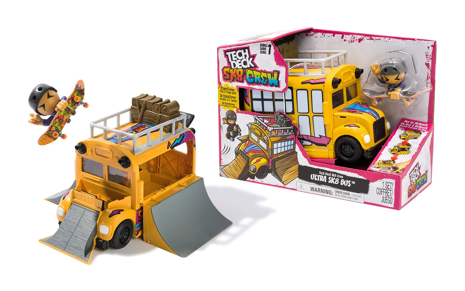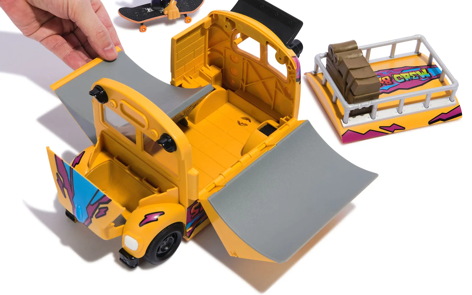 Set skejtborda Sk8 Crew sa igralnim setom avtobusa, Tech Deck, Spin Master. Postavite figuricu na rolku i izvodite profesionalne trikove na igraćem setu autobusa koji nudi različite površine za izvođenje zahtjevnih trikova.