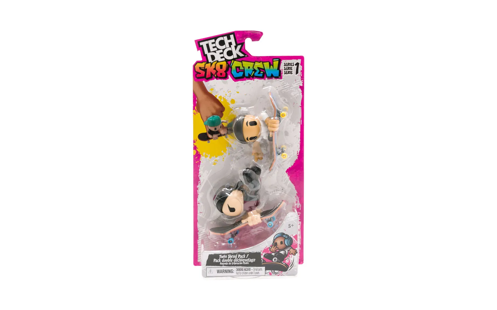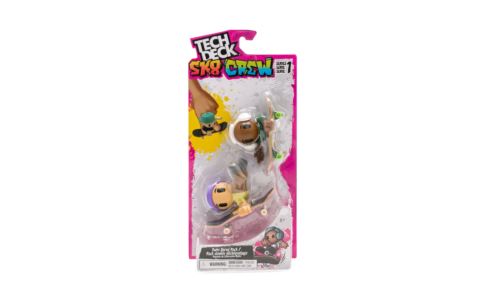 Naučite se vožnje na prstnim skateboardima s potpuno novim setom 2 ekskluzivna prstna skateboarda s figuricama, Sk8 Crew, Tech Deck, Spin Master. Svaki set uključuje dva ekskluzivna Tech Deck prstna skateboarda, dva člana tima Sk8 i dva lista sa naljepnicama. Sa osam figura Sk8 Crew koje možete sakupiti, poboljšajte svoje trikove i usavršite se u ollies i power slideu. Skenirajte QR kod i osvojite sve trikove koje nudi video tutorial.