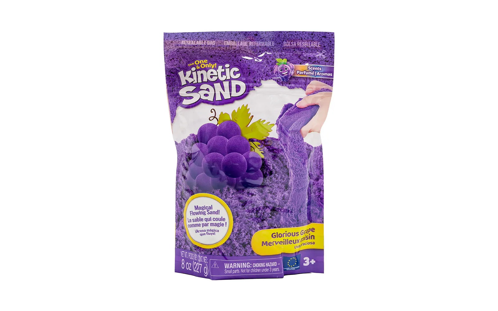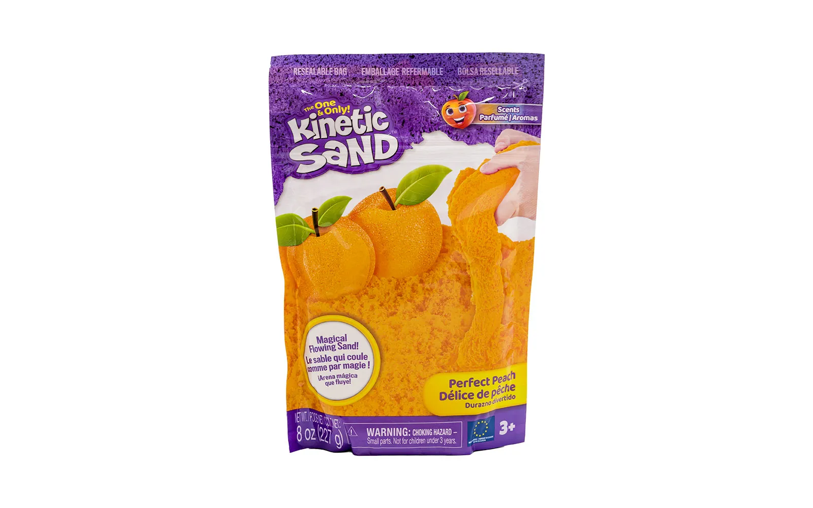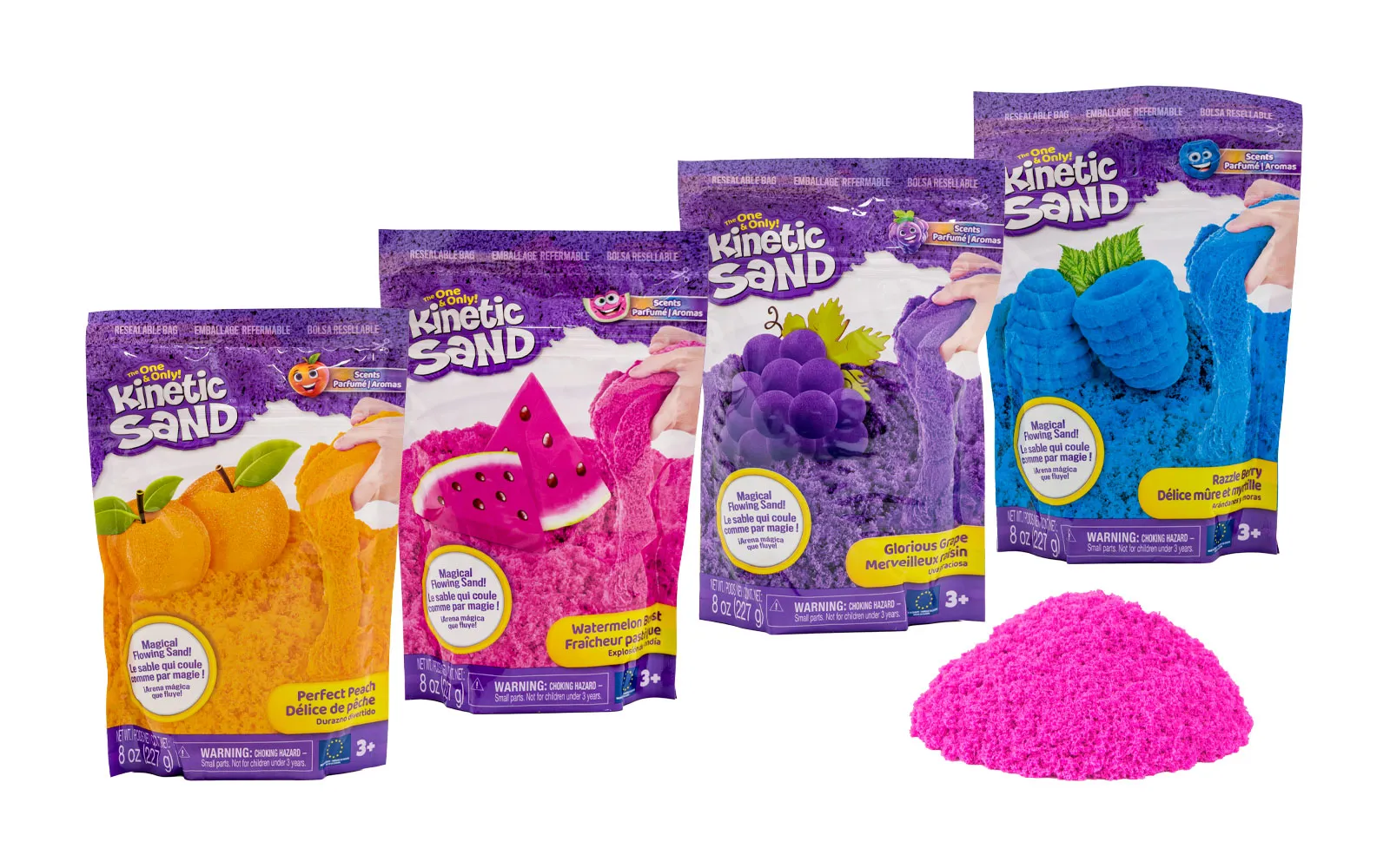 Kinetički pijesak sa mirisom, Kinetic Sand, Spin Master. Dostupan u narančastoj, ljubičastoj, plavoj ili roza boji. Set sadrži 227 g kinetičkog pijeska. Pijesak Kinetic Sand proizveden je u Švedskoj.