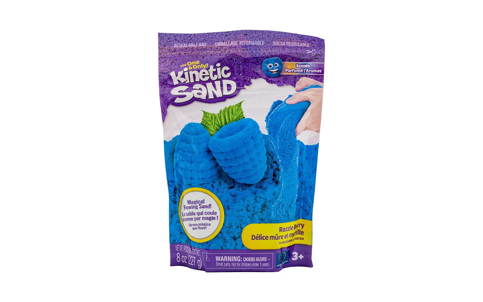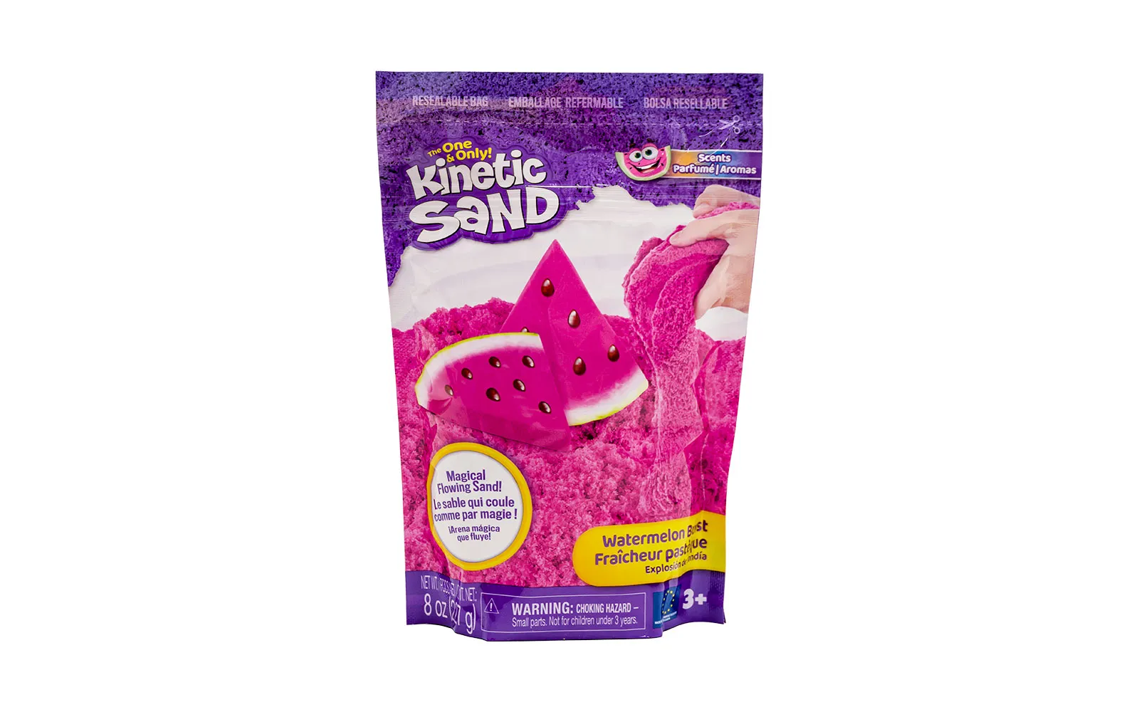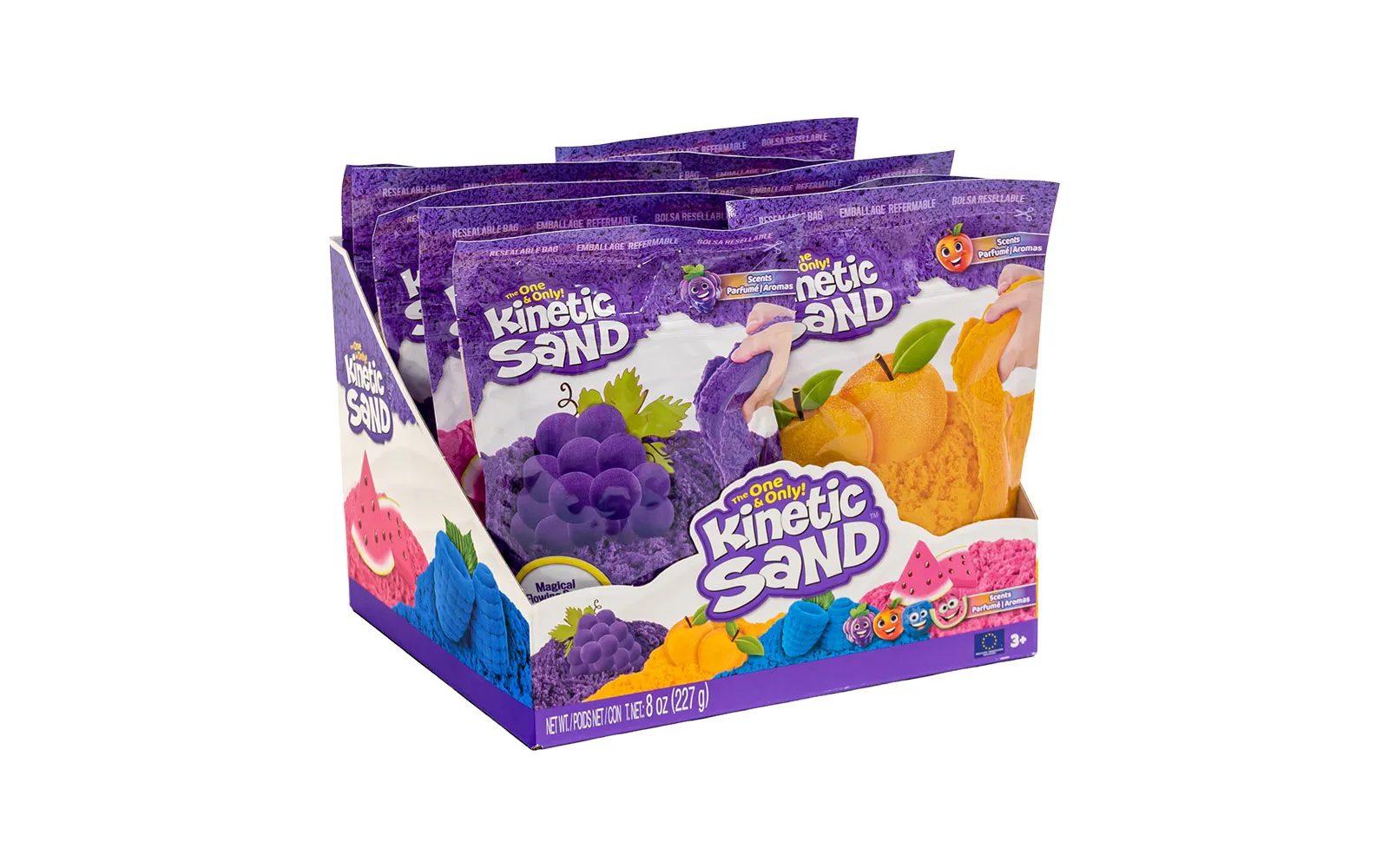 Kinetički pijesak sa mirisom, Kinetic Sand, Spin Master. Dostupan u narančastoj, ljubičastoj, plavoj ili roza boji. Set sadrži 227 g kinetičkog pijeska. Pijesak Kinetic Sand proizveden je u Švedskoj.