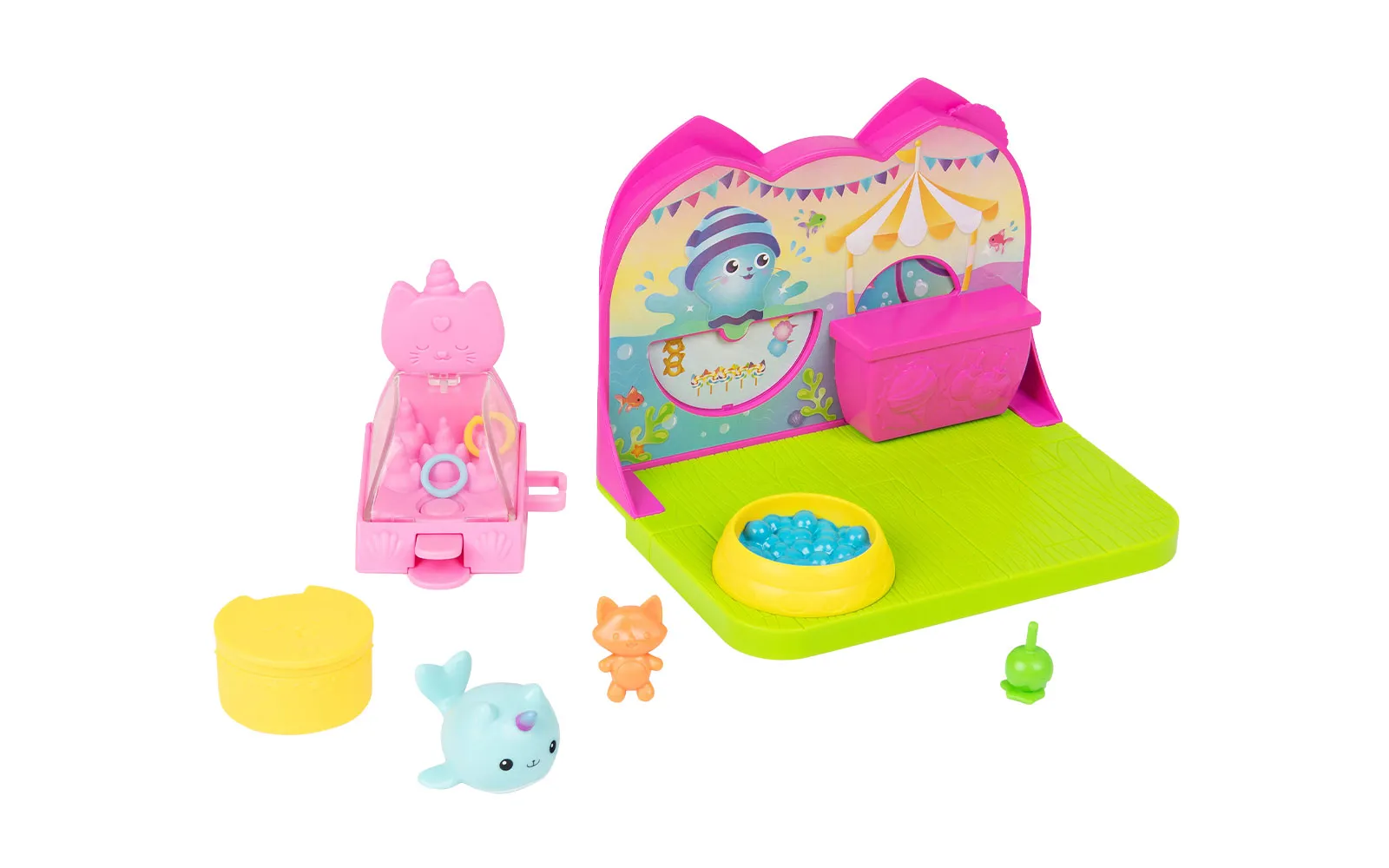 Otkrijčarobnisvijetigre s sobicamaukarnevalskomstilu! PostavimačkuNarvalub bazen s kuglicama ili isprobaj svoju sreću u simpatičnoj igri bacanja obruča. Osvojinagradu izavrti gumb, dadodatno uživakrozčarobnepromjenu scenarija! U setu te čekajudivnapojedinosti: igra bacanja obruča s mačkom Narvalom i igračka sa životinjama kao nagrada! Ne zaboravi zapakirati dostavu kućice, gdje te čeka iznenađenje u karnevalskom stilu. Ovaj set je idealan za zabavnu i uzbudljivu ulogu. Koristi ga s Gabbyjinim čamcem prijateljicama ili ga dodaj u Gabbyjinu Purrfect kućicu, svaka se prodaje odvojeno. Sa svim tematskim sobama, namještajem i igračkama možeš stvoriti svoj jedinstven svijet kućice, koji potiče maštu i kreativnost kod djece. Gabbyjine dječje igračke su odlične za predškolsku djecu i savršene poklone za sve koji vole igru s lutkama, dodacima, iznenađenjima, plišanim životinjama, slagalicama i društvim igrama! Uključuje: 1 sobu kućice, 1 figuricu, 1 igru bacanja obruča, 1 paket i 1 dodatak.