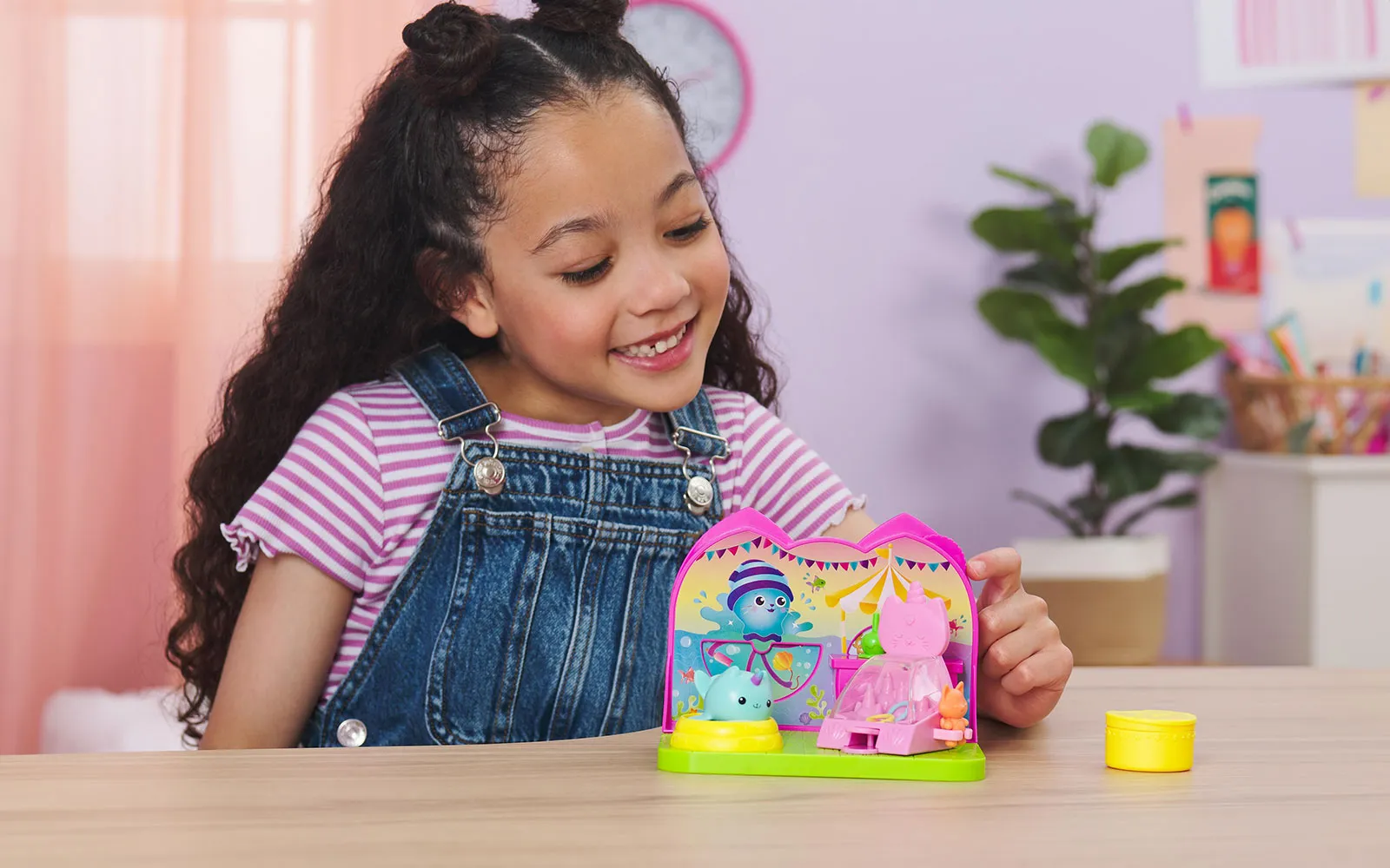 Uđite u predivni svijet crtića Gabby's dollhouse i otkrijte simpatične mačke i šarene čarolije! Pridružite se mačkoljubki Gabi i njezinoj pomoćnici Pandošap u svijetu zabavne igre! Ovdje su Gabi, Pandošap, Pandi, Vila mace, Mucon, Škateljca, Tortek, Morska macka, Avtjuša, Dremucka, Dj Mijav, Artur, Petar, Puhica Puhek, Flori, Škatolina, Bučko, Cukerc, Pekica, Kosmiček, Tortina, Papagaj Pika, Cofka, Dj Komet, Lili-LU i Upsi, koji te čekaju da im se pridružiš u zabavnim avanturama. Originalna imena likova u Gabby's dollhouse su Gabby, Pandy Paws, Pandy, Kitty Fairy, Catrat, Baby Box, Cakey, MerCat, Carlita, Pillow Cat, Dj Catnip, Arthur, Pete, Fluffy Flufferton, Floyd, Mama Box, Pumpkin, Flakey, Bakey, Marshapan, PaddyCake, Parrot, Eggy, Dj Comet, Luli-Loo i Whoopsie.