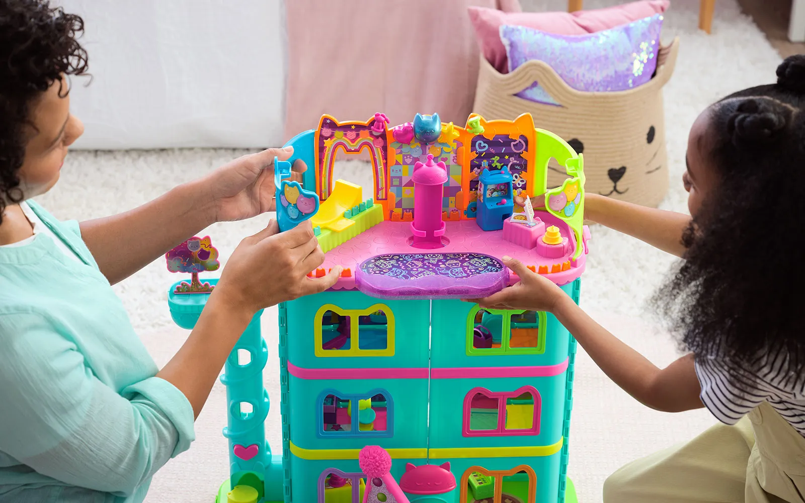 Uđite u čudesni svijet crtane serije Gabby’s dollhouse i otkrijte slatke mačke i šarene čarolije! Pridružite se ljubiteljici mačaka Gabby i njezinoj pomoćnici Pandi u svijetu zabavne igre! Ovdje su Gabby, Pandy Paws, Pandy, Kitty Fairy, Catrat, Baby Box, Cakey, MerCat, Carlita, Pillow Cat, Dj Catnip, Arthur, Pete, Fluffy Flufferton, Floyd, Mama Box, Pumpkin, Flakey, Bakey, Marshapan, PaddyCake, Parrot, Eggy, Dj Comet, Luli-Loo i Whoopsie koji vas čekaju da im se pridružite u zabavnim avanturama. Originalna imena likova u Gabby’s dollhouse su Gabby, Pandy Paws, Pandy, Kitty Fairy, Catrat, Baby Box, Cakey, MerCat, Carlita, Pillow Cat, Dj Catnip, Arthur, Pete, Fluffy Flufferton, Floyd, Mama Box, Pumpkin, Flakey, Bakey, Marshapan, PaddyCake, Parrot, Eggy, Dj Comet, Luli-Loo i Whoopsie.