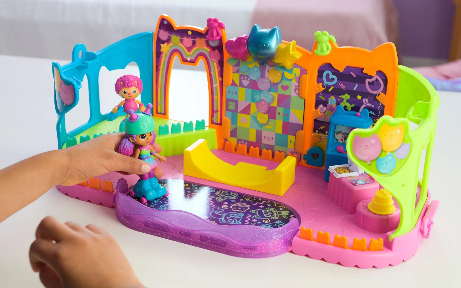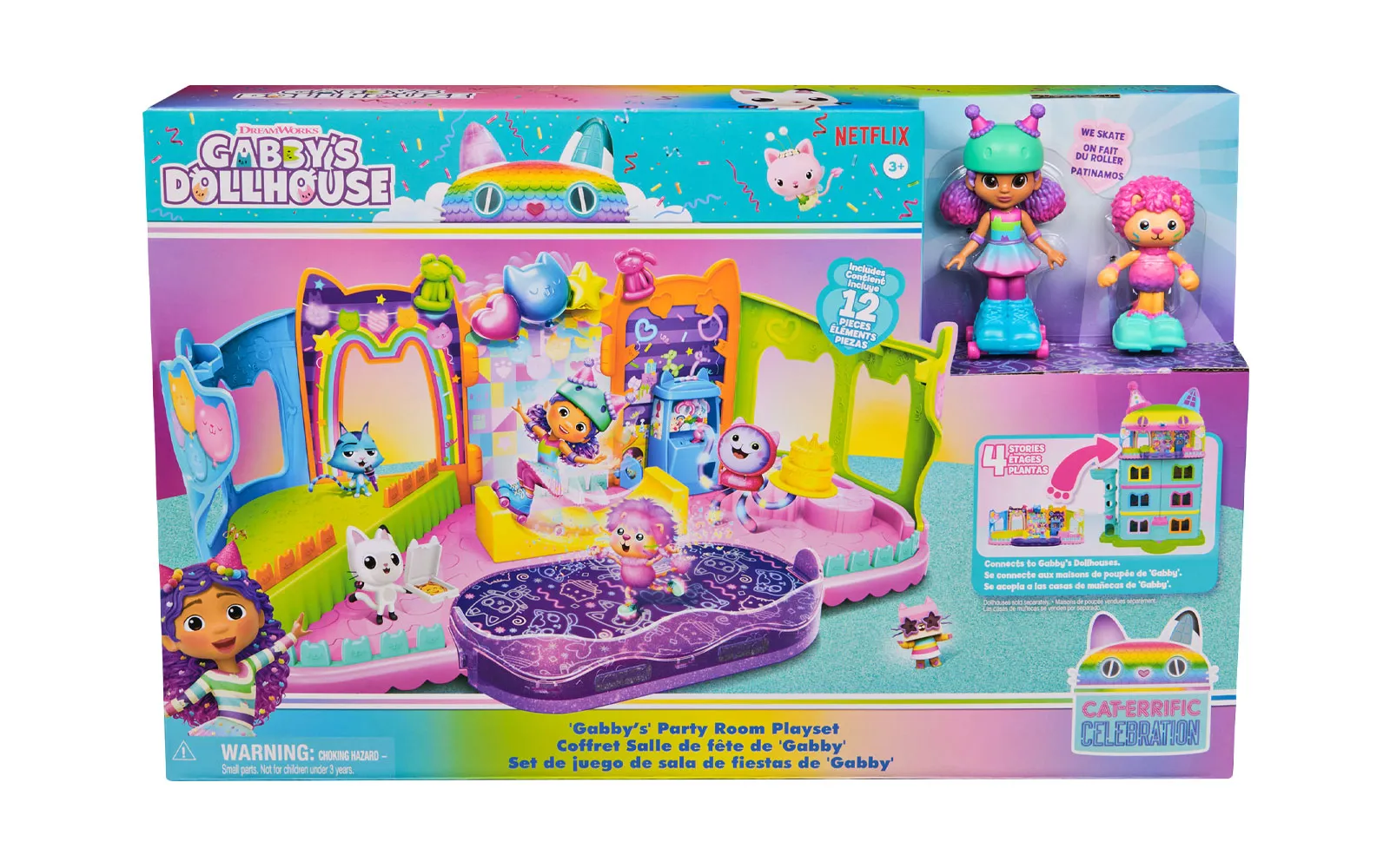Uđite u čarobni svijet Gabby's dollhouse s igraćim setom Gabbyjina soba za zabave! Otkrijte neograničene mogućnosti igre s ovim zabavnim setom, koji uključuje ekskluzivne 10-centimetarske figure Skater Gabby i Skater Marty, te igračku Mačka na zabavi s pokretnim skejtbordima. Sadržaj seta: 1 igraći set, 2 figure, 8 dodataka i još mnogo više. Stvorite savršenu zabavu: Ukrasite prostor za zabavu prekrasnim dodacima i namještajem za kuću lutaka. Uživajte u senzoričkoj igri s igračkama za stres, koje su ugrađene u zid zabavnog prostora. Povežite sobu za zabavu s Gabbyjinom kućom lutaka i proširite je na čak 4 kata! Koristite mačje dizalo kako biste se s figurama popeli u prostor za zabavu. Gabbyjina kuća lutaka je savršen dar za djevojčice i dječake koji vole seriju na Netflixu i uživaju u stvaranju imaginarnih svjetova. Skupljajte i sastavljajte figure, dodatke i namještaj te stvorite svoju kuću lutaka iz snova. IGRALIŠTE I SKATE PARK: Gabbyjin prostor za zabavu uključuje skejtbord rampu, pozornicu i klizalište. Set uključuje simpatične dodatke poput automata za igračke i figure Skater Gabby i zabavi Marty Mačak s pokretnim skateboardima. PRIMJERENO ZA Gabbyjinu kuću lutaka: Soba za zabavu može se pričvrstiti na tavanski prostor obje verzije kuće lutaka, proširujući kuću na čak 4 kata, za beskrajnu zabavu s Cat-errific proslavama. OTKRIVANJE IZNENAĐENJA: Otvorite Dostavu kuće lutaka, kao što Gabby radi u seriji, i otkrijte tajanstveni dodatak - tamburin, koji je savršen za stvaranje nezaboravnih zabava u vašoj kući lutaka. IZGRADITE SVOJ SVIJET KUĆE LUTAKA: s različitim tematskim sobama, namještajem, figuricama i igraćim setovima stvorite svijet kuće lutaka koji će djeci pomoći razviti maštu kroz igru. SKUPITE SVE: Gabbyjine igračke za kuću lutaka su odlične za predškolske uzraste i kao dar za djecu koji vole igračke s lutkama, iznenađenja, plišane igračke, slagalice i društvene igre.