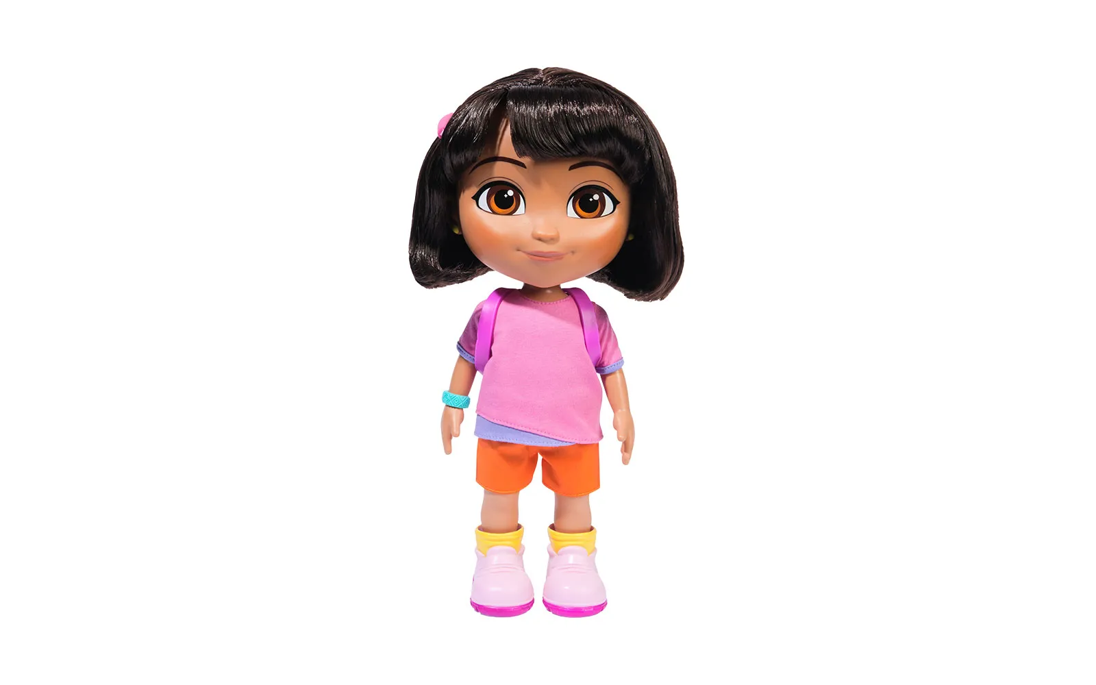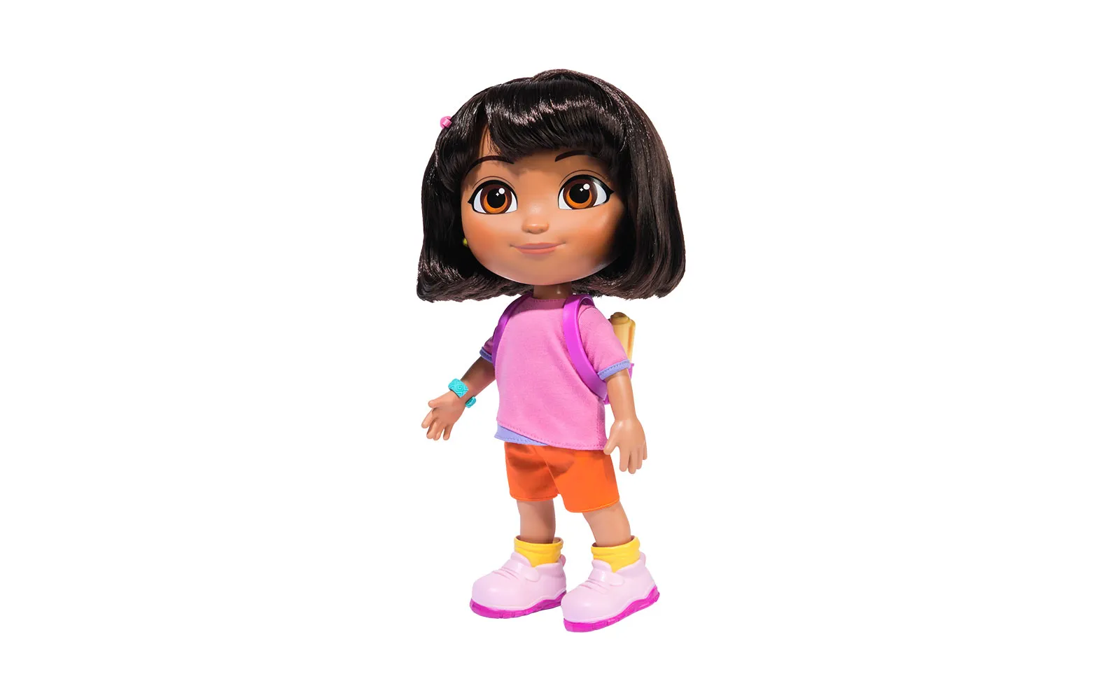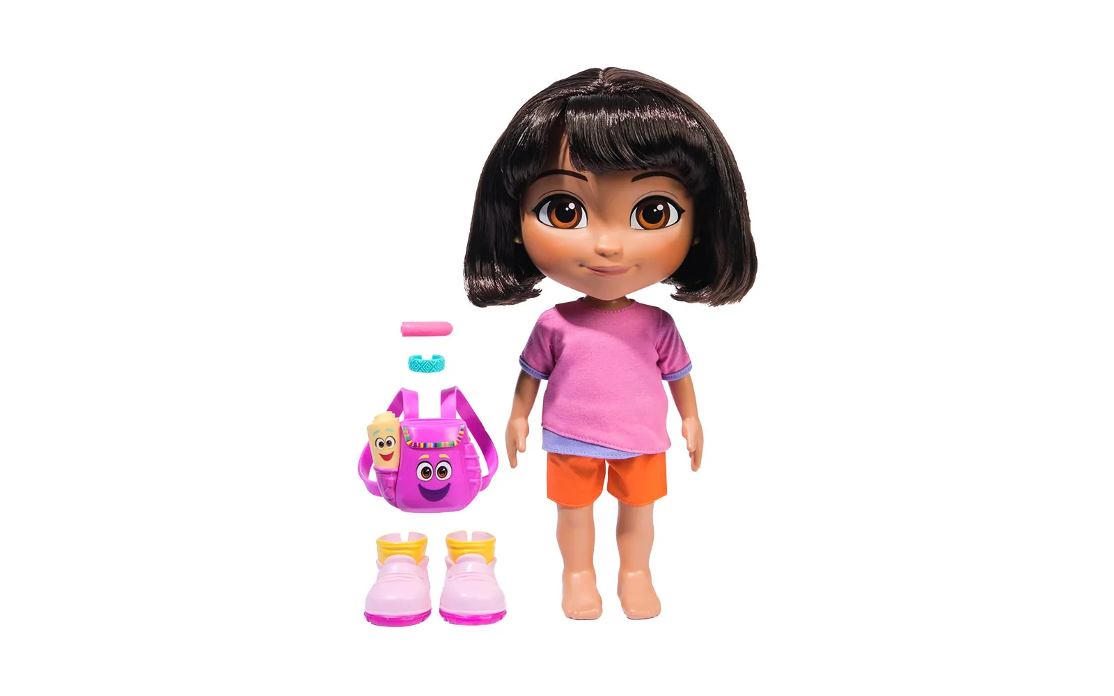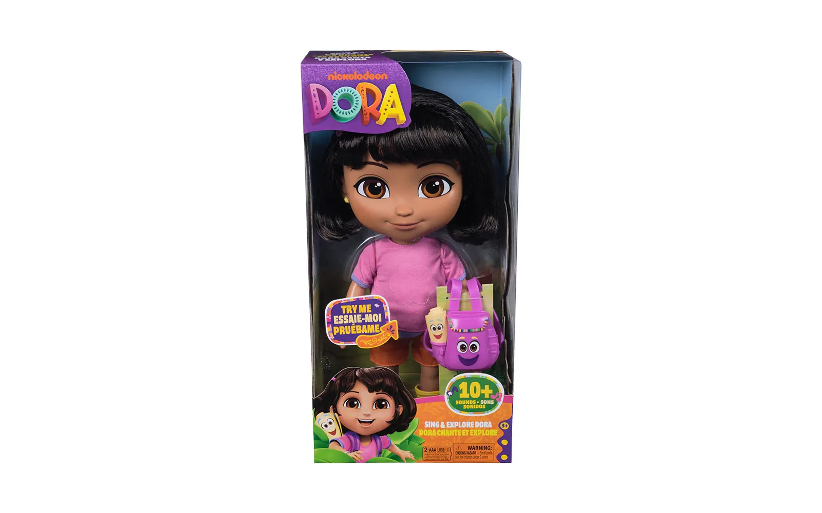 Djevojčica Dora sa zvučnim efektima, set. Djevojčica ima šarena odjeća, ruksak, kosu za češljanje. Djevojčica pjeva 2 pjesmice i izgovara različite fraze. Proizvod radi na bateriji tipa 2xAAA, koje su priložene.