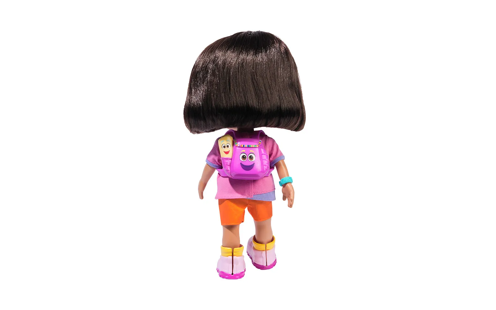 Djevojčica Dora sa zvučnim efektima, set. Djevojčica ima šarena odjeća, ruksak, kosu za češljanje. Djevojčica pjeva 2 pjesmice i izgovara različite fraze. Artikl radi na baterije tipa 2xAAA, koje su priložene.