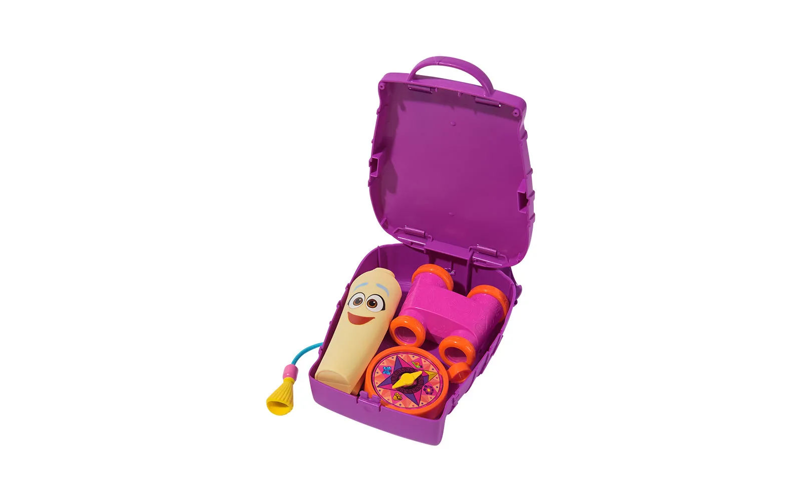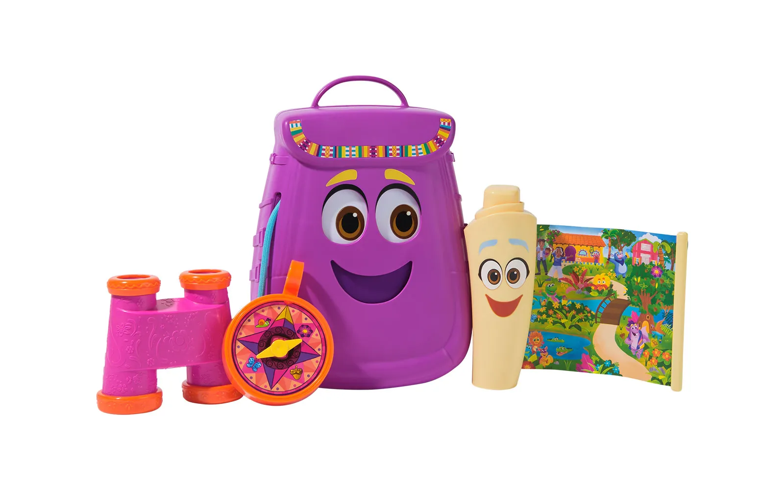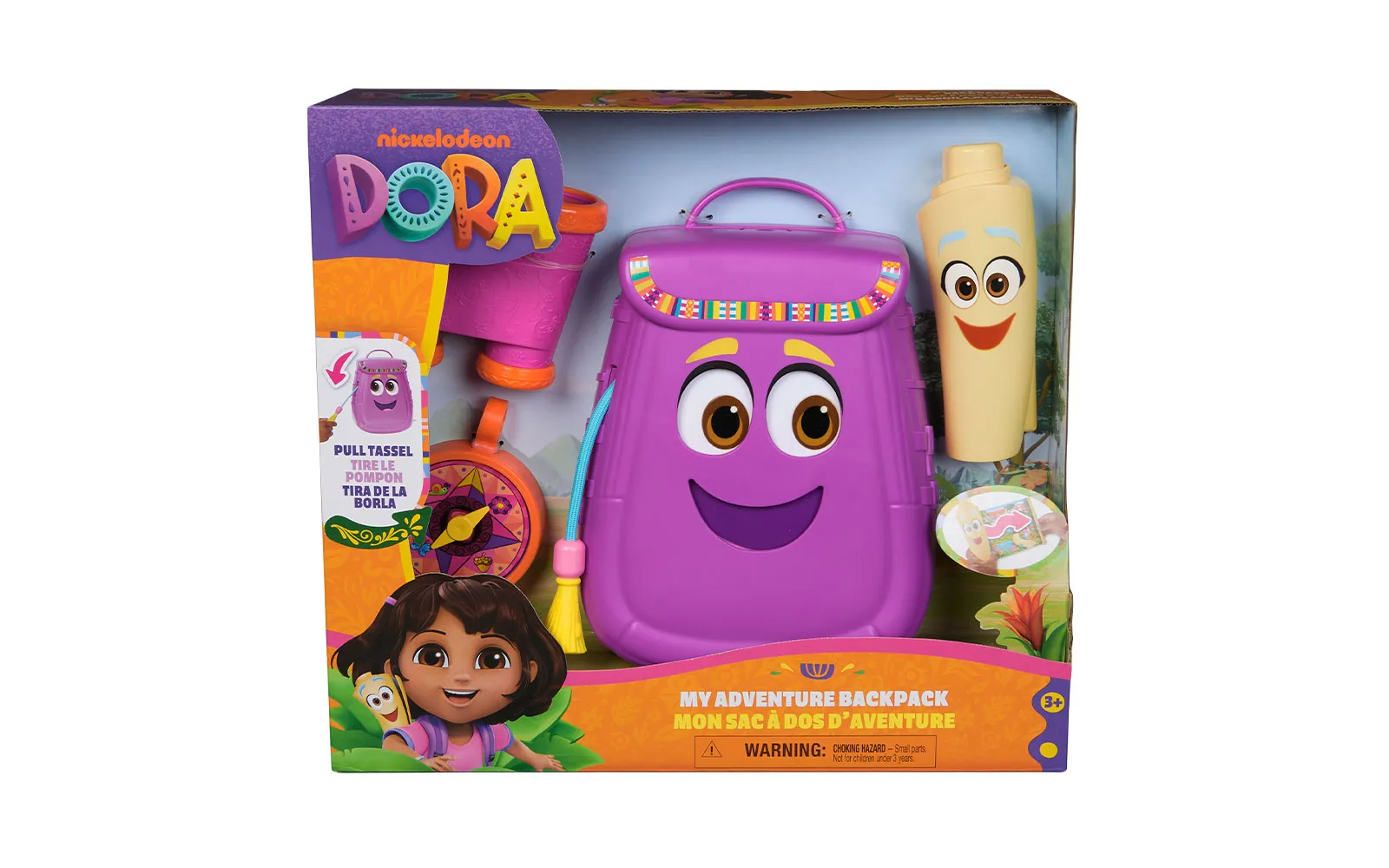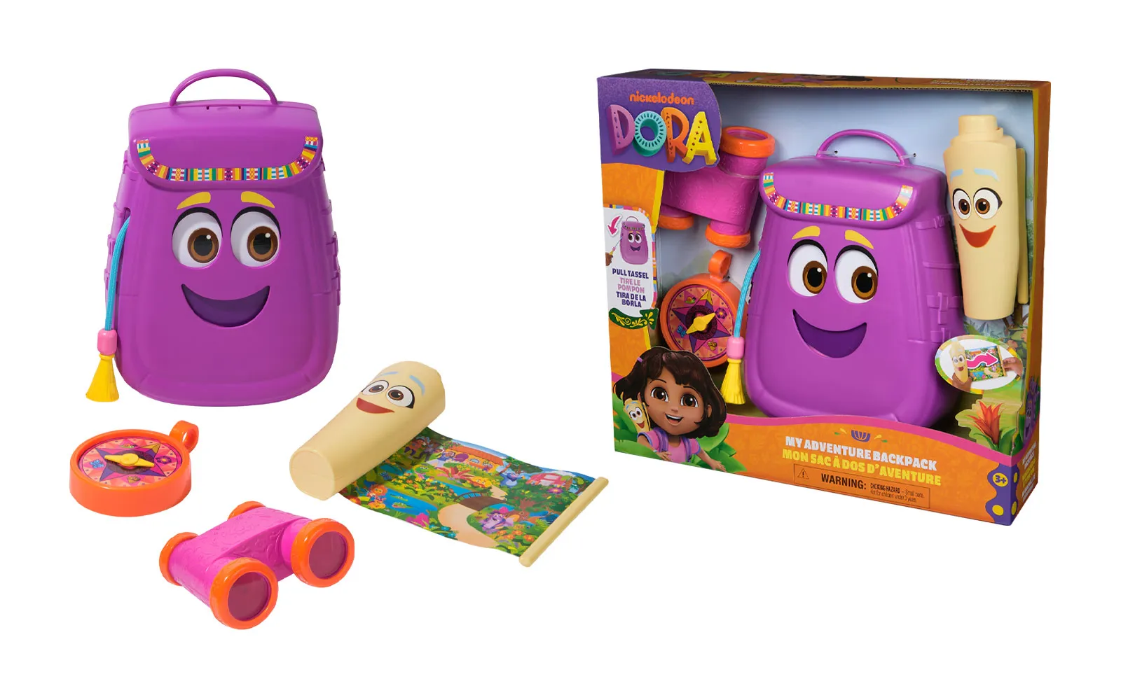 Ruksak, set, Dora. Ovaj zabavan i coloriti set sadrži ljubičasti ruksak s printom, dalekozor, kompas i kartu - sve za pravu avanturističku pustolovinu!