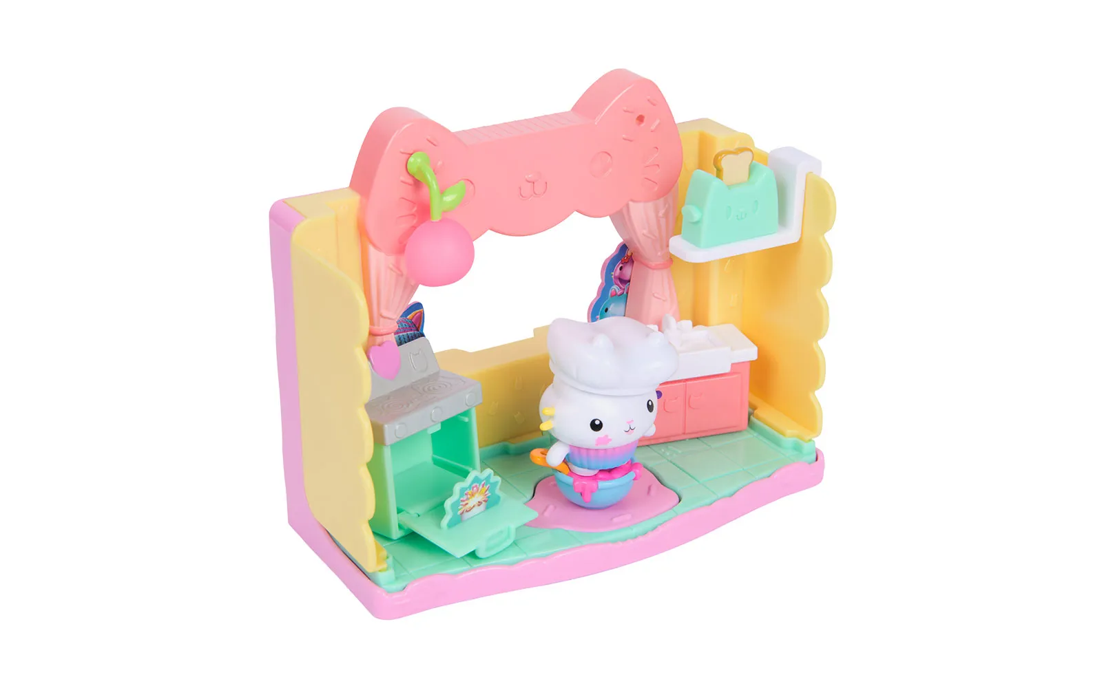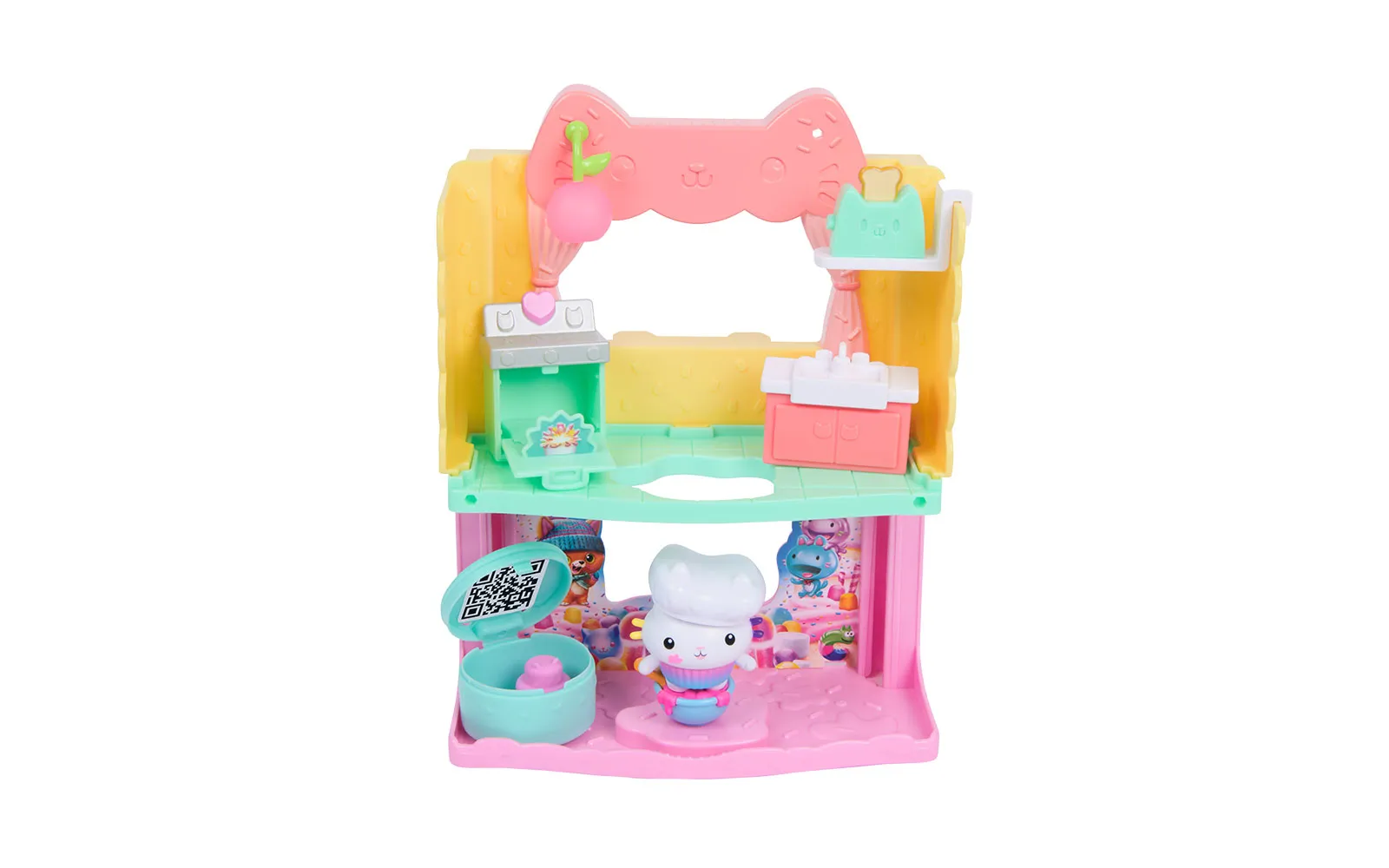 Kuhinja, set, Gabby's Dollhouse. Ova kuhinja je prava čarolija, jer je na dva kata! Kuhinja s različitim dodacima omogućuje zabavnu igru s likovima Gabby's Dollhouse, istovremeno omogućujući skok u lonac za uranjivanje u donji kat. Pripremite prave kulinarske specijalitete sa likovima GDH!