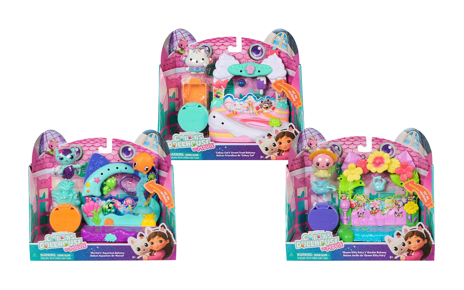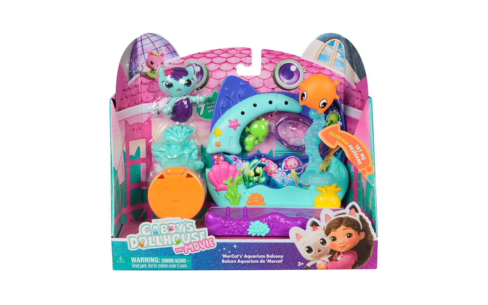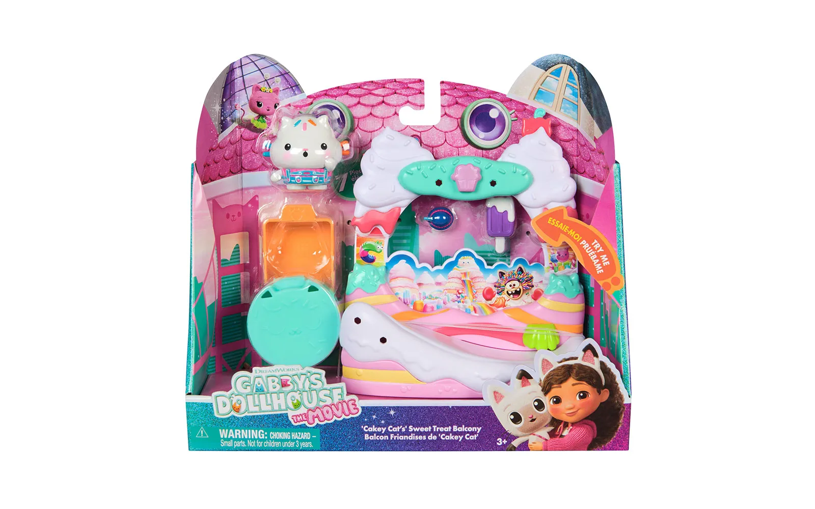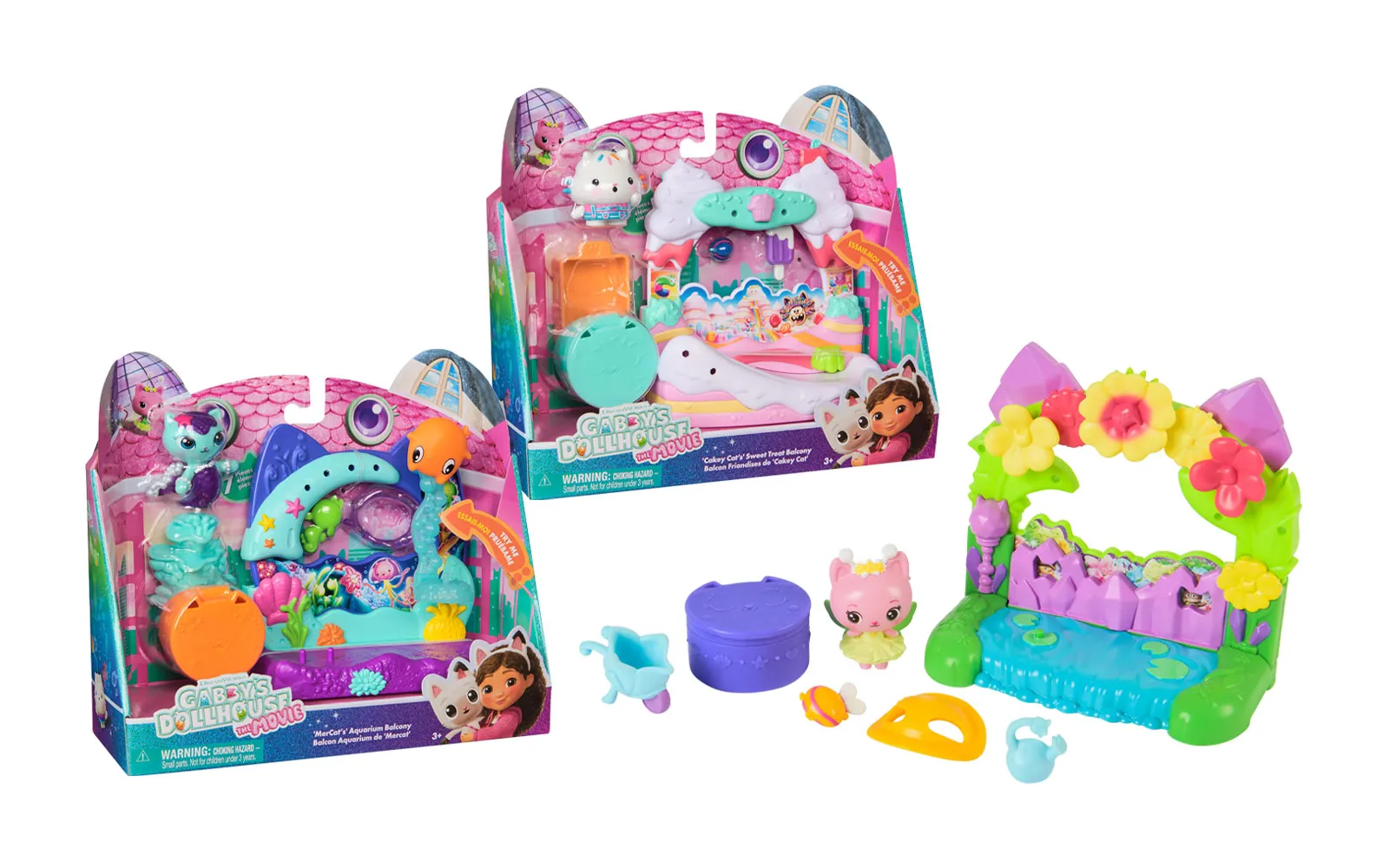 Balkon set, Gabby's dollhouse. S balkonskim setom upoznajte nove likove iz filma Gabby's dollhouse, dok istovremeno balkoni imaju različite pokretne elemente. Možete birati između Aquarium world, Crystal Garden World ili Confectionary World. S balkonima možete obnoviti svoju kućicu Gabby's dollhouse.