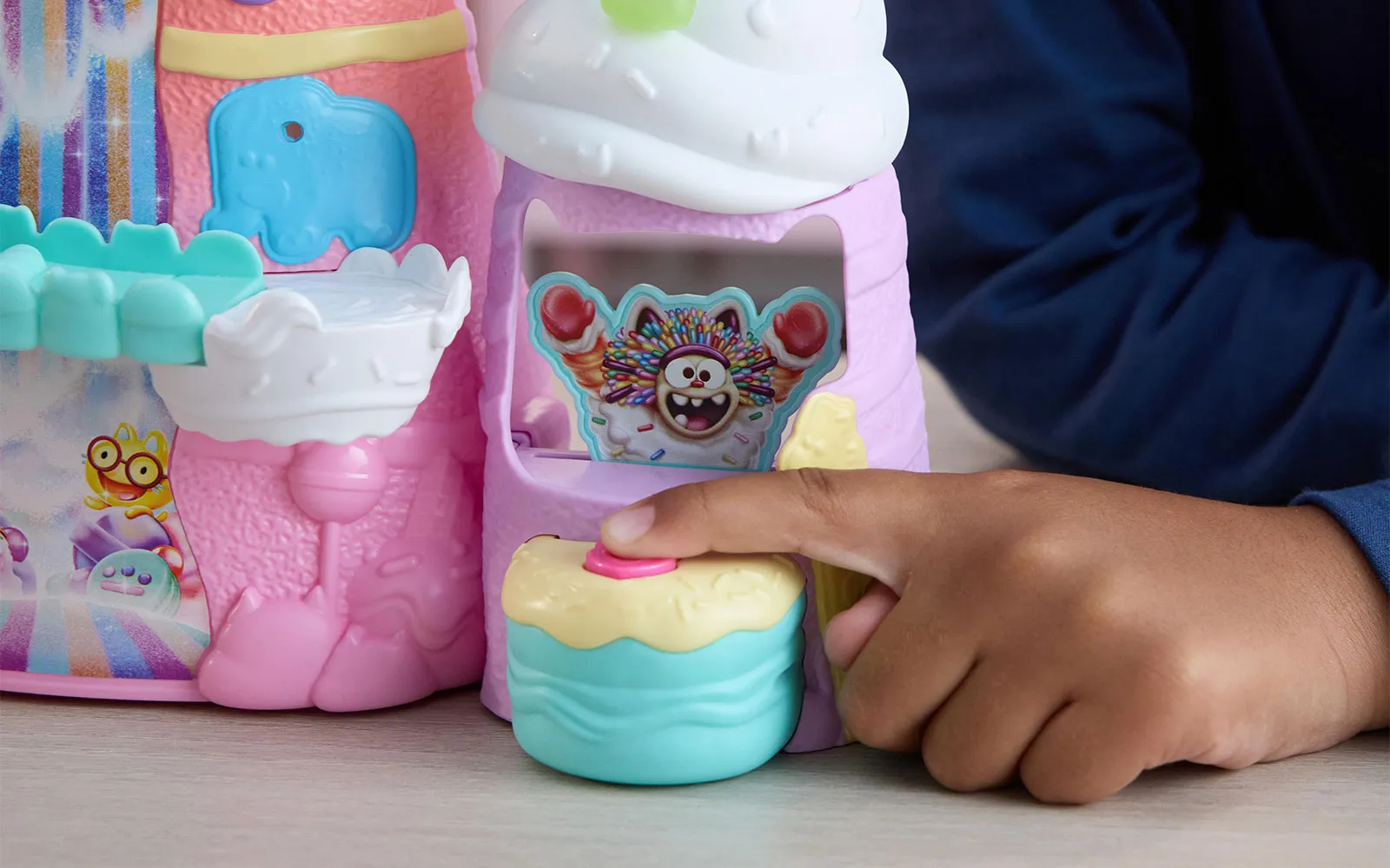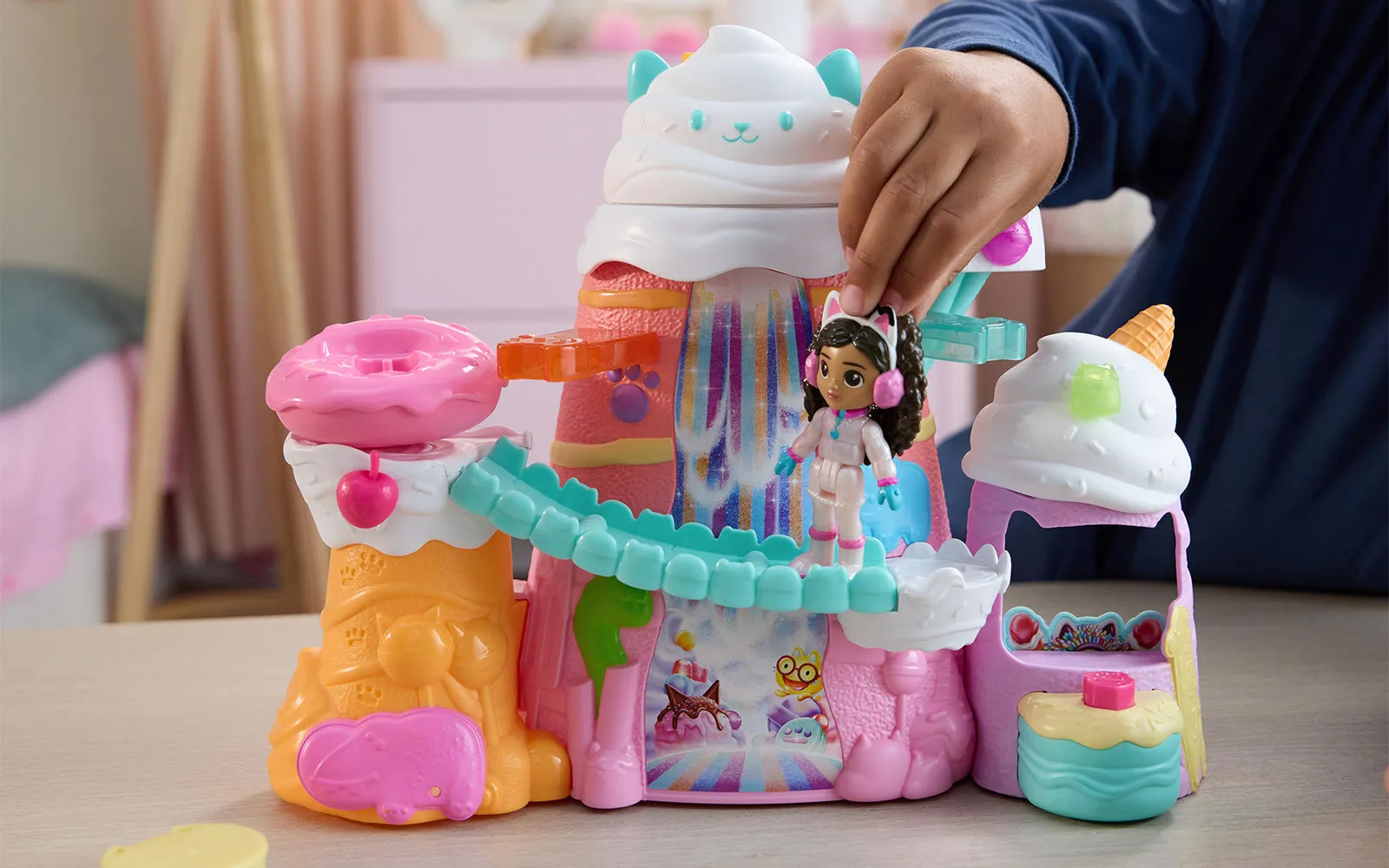 Set slatkih stvari, Gabby's dollhouse.Set Gabby's Dollhouse Sprinkle Party Sweet Treat Set uključuje 15 različitih komada, uključujući čaše, tanjure, žličice, pladanj, šećer, penaste bombone, voće i kremu. Djeca mogu stvarati slatke zabave, napuniti čaše toplom čokoladom, dodati bombone i voće i pomiješati kremu za otkrivanje ukusnog kolača. Set potiče maštu i role-play igru, omogućujući kreiranje različitih scena.