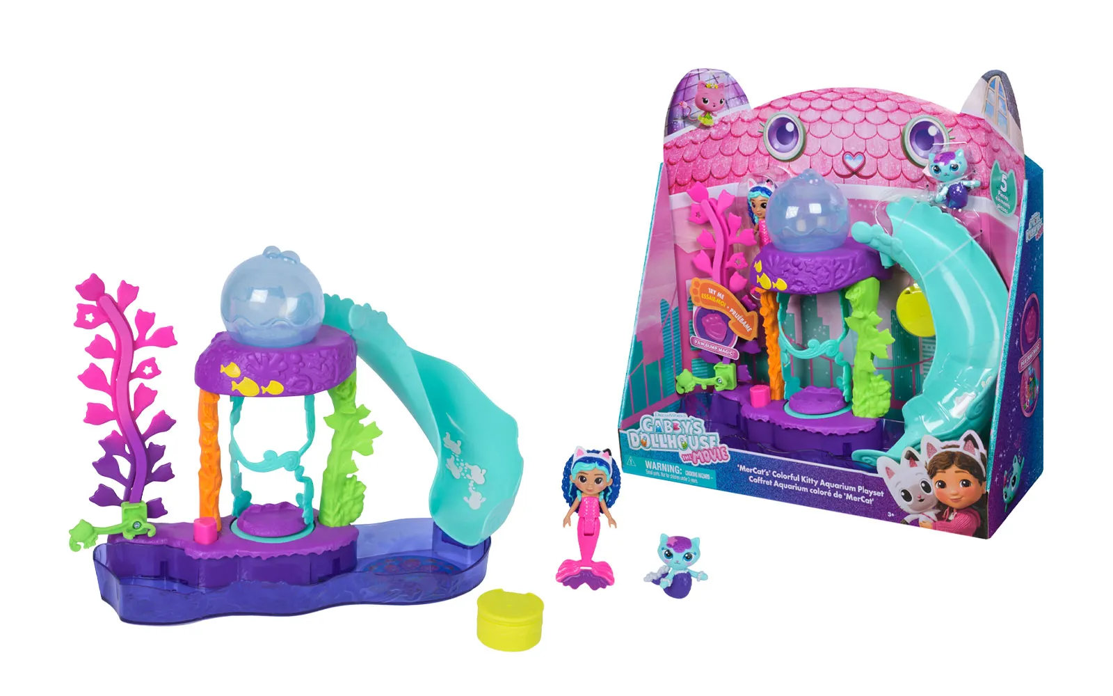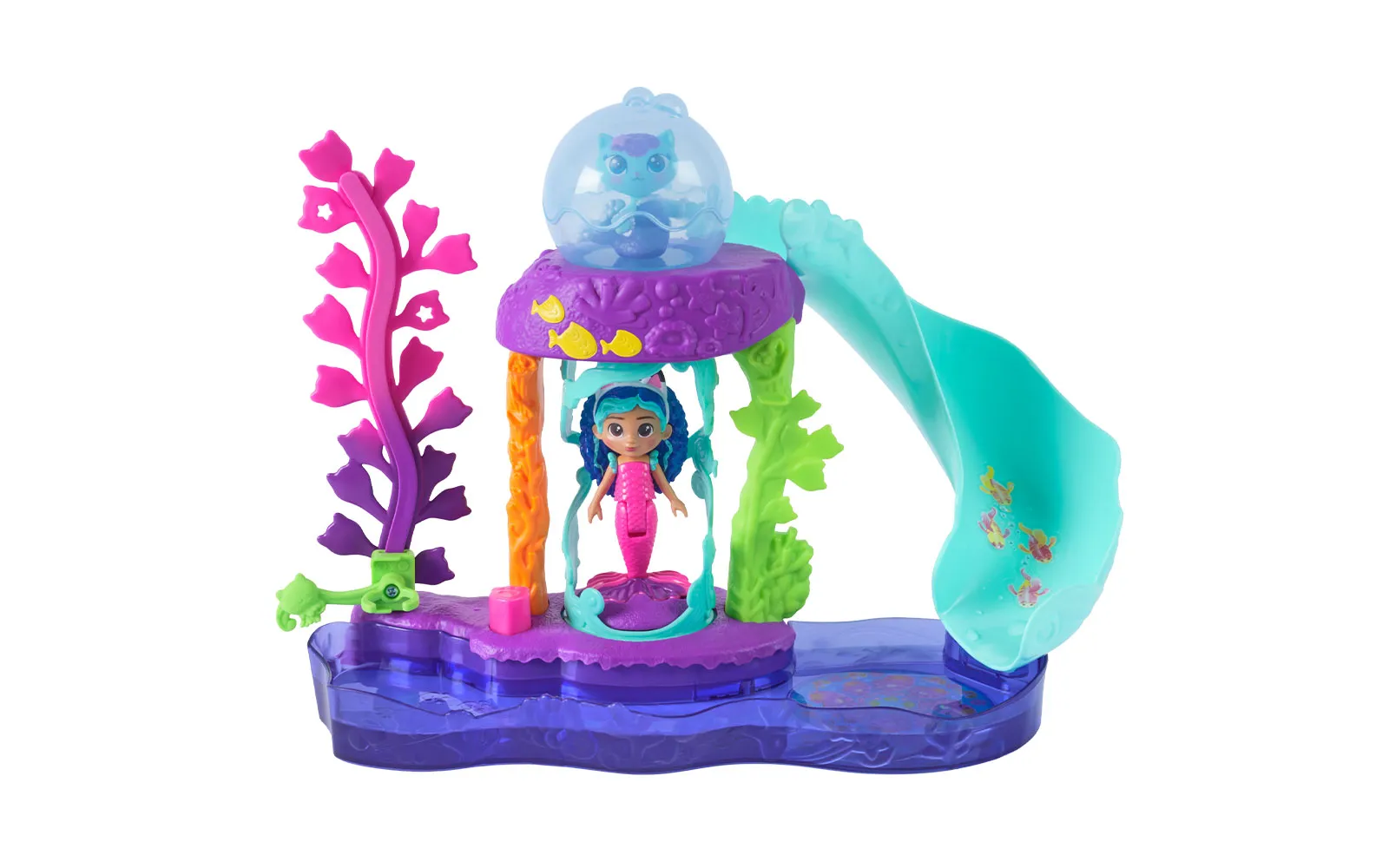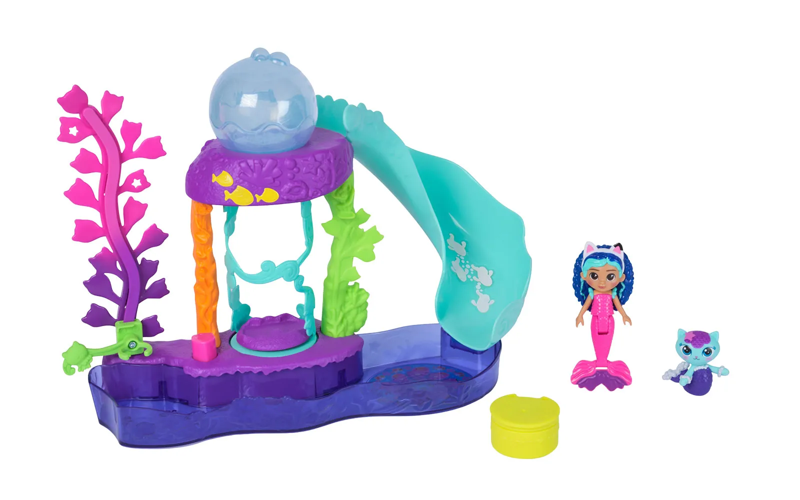 Akvarij set, Gabby's dollhouse. Set sadrži različite figurice, tobogan, ribicu, vodena stabla i još mnogo toga. Spustite svoju figuricu niz tobogan i zabavite se!