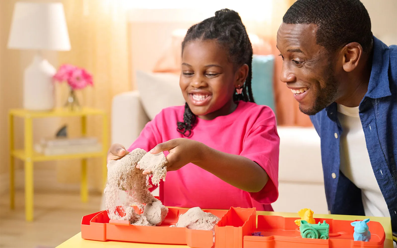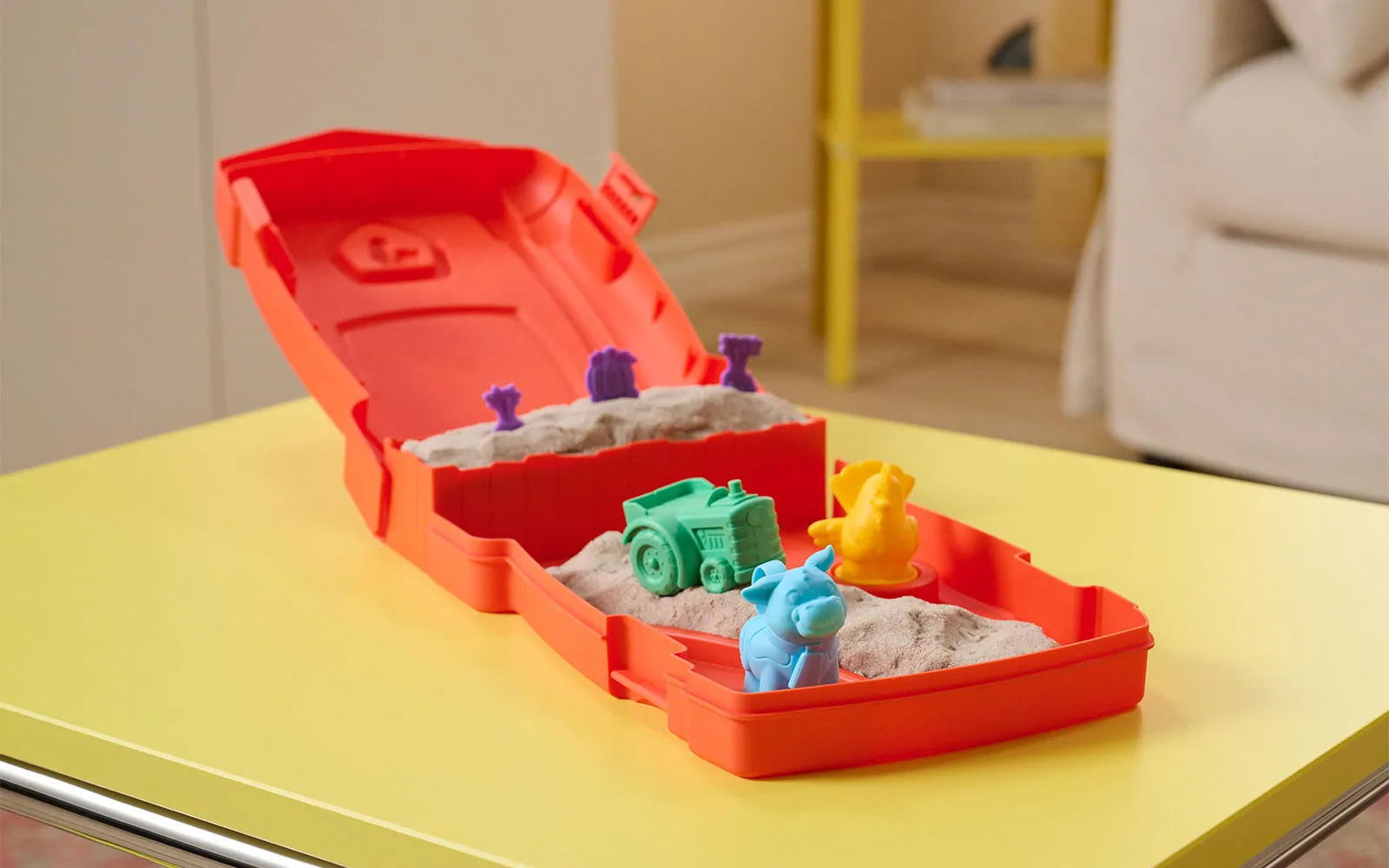 Kinetički pijesak Sandy Farm, set, Kinetic Sand, Spin Master. Stvorite nevjerojatne skulpture - djeca će osjetiti pijesak, napipati ga, oblikovati, čime će jačati svoje kreativne sposobnosti. Pijesak kinetičkog pijeska proizveden je u Švedskoj.