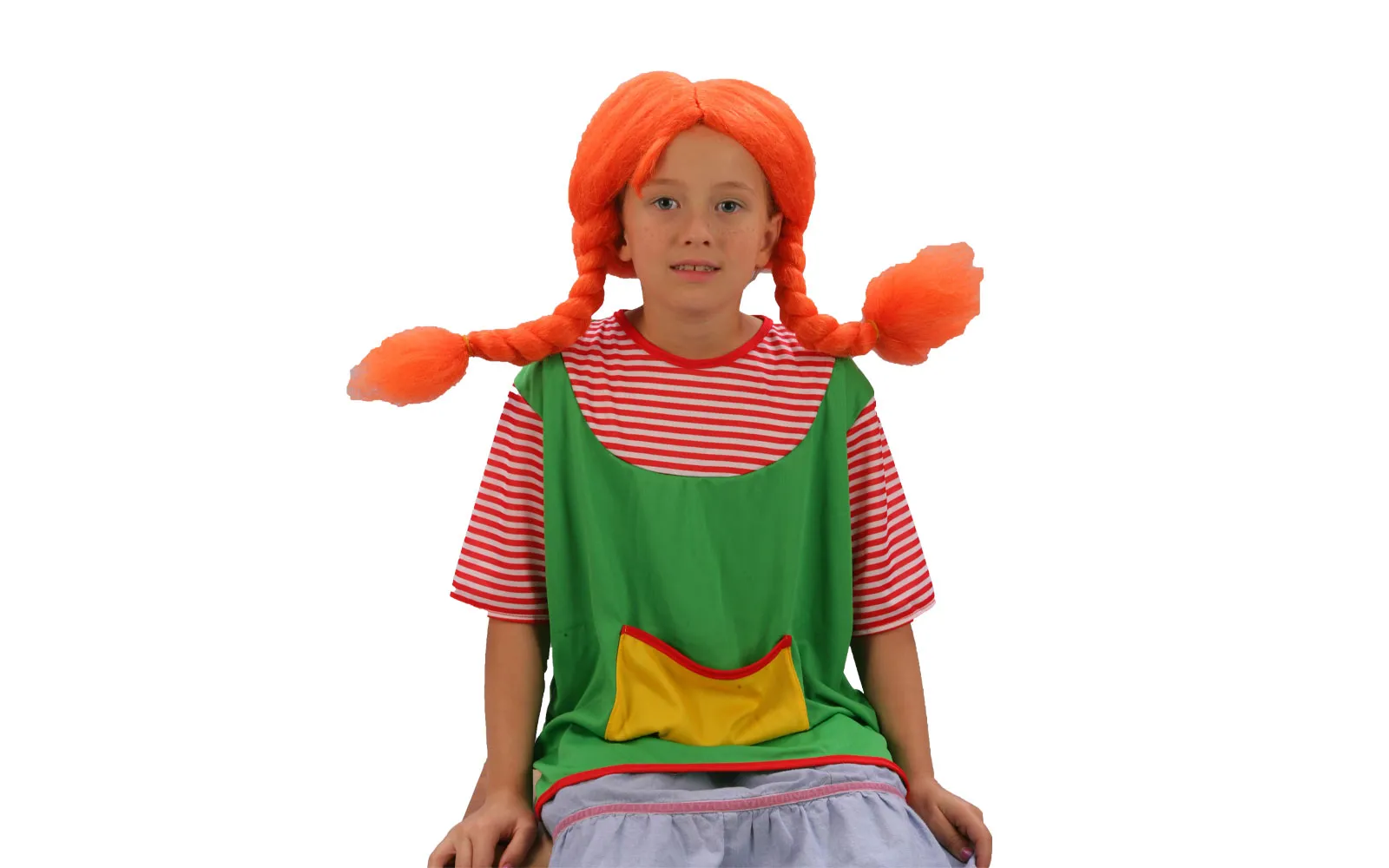 Obogati svoj kostim za maškare s perikom za maškare ˝Pipi duga čarapa˝ koja ima prekrasne duge narančaste pletenice. Sastav materijala: 100% poliester.