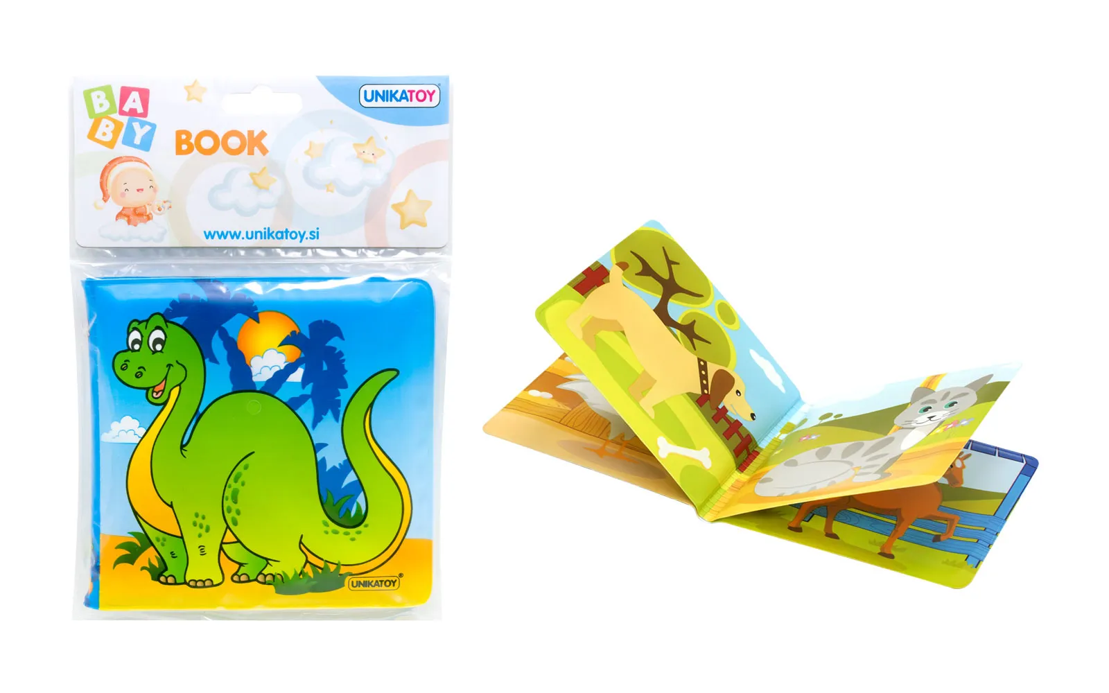 Učinite kupanje zabavnim s ovom knjigom za bebe koja je vodootporna i sadrži slike s različitim zanimljivim motivima. Oduševiti će vaše dijete te ga potaknuti na učenje i prepoznavanje različitih oblika. Knjige su dostupne sa sljedećim motivima: vodne životinje, dinosauri, vozila i jutro.