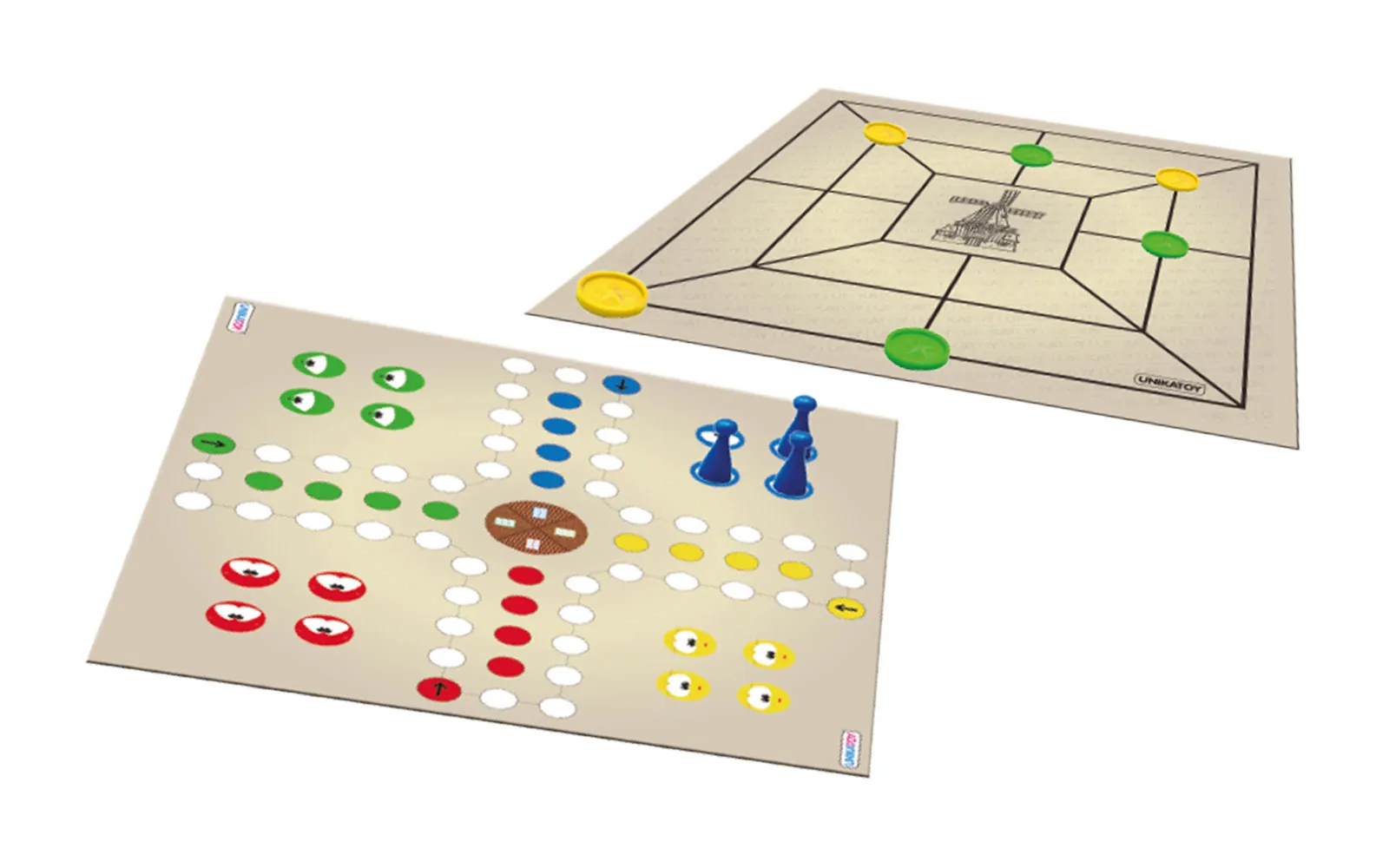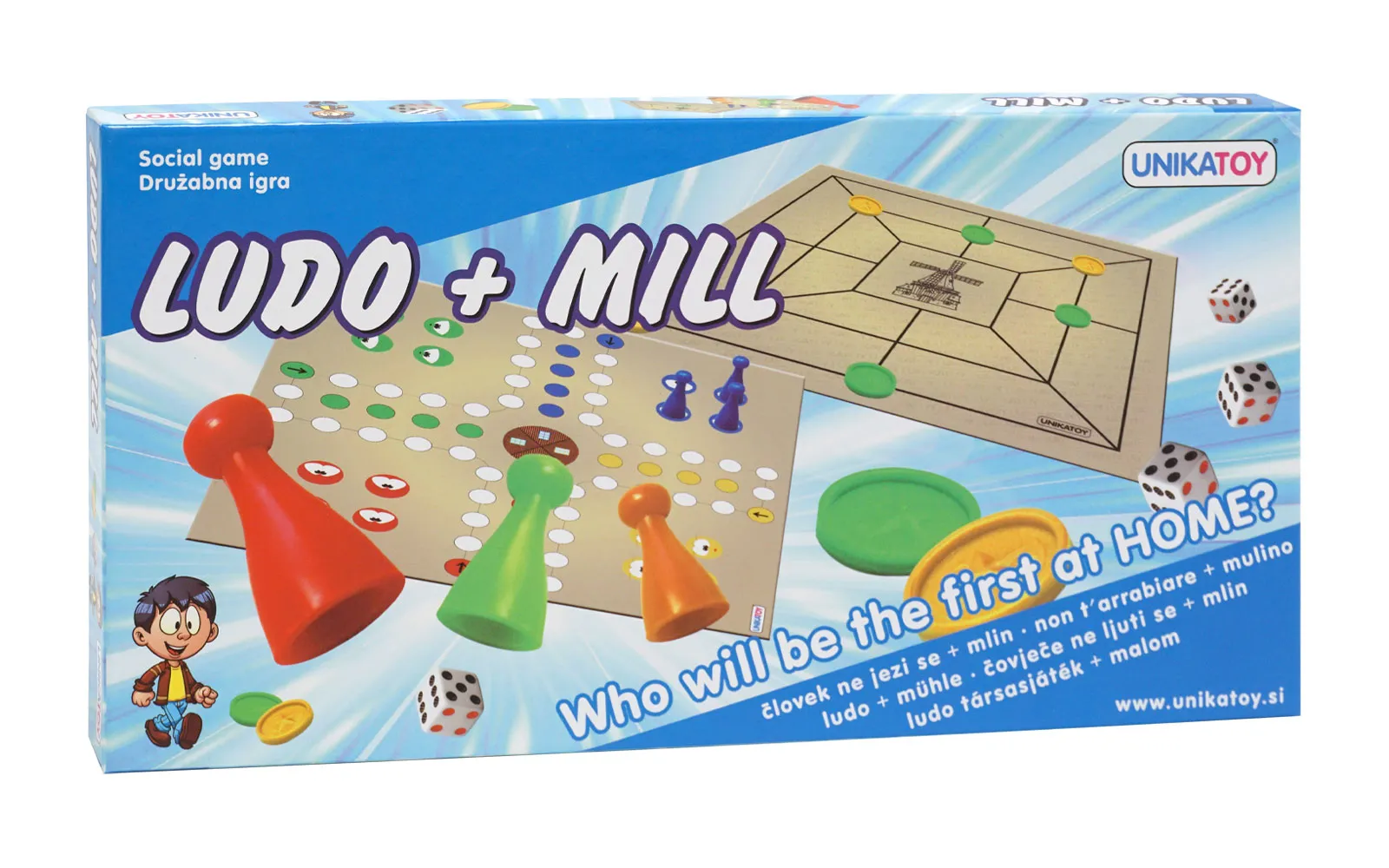 Dvije igre u jednoj - društvene igre čovječe ne ljuti se i mlin za veselje, zabavu svih vas starijih od tri godine. Čovječe ne ljuti se je igra za dva do četiri igrača, mlin je zabavna igra za dva igrača. Baci kocku, pomakni figuricu, dovedi prvi sve 4 figurice na cilj ili postavi pločicu i pokušaj izgraditi mlin.