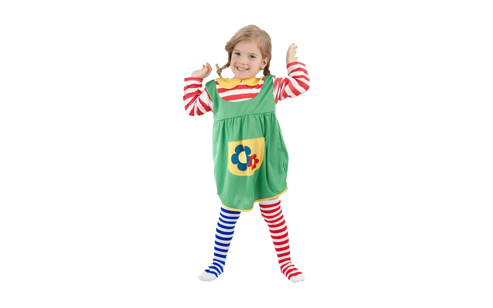 Lukav i zabavan kostim Pippi Duge Čarape za najmlađe uključuje haljinu i čarape. Veličina 80-92 cm ili 92 - 104 cm. Sastav: 100% POLIESTER