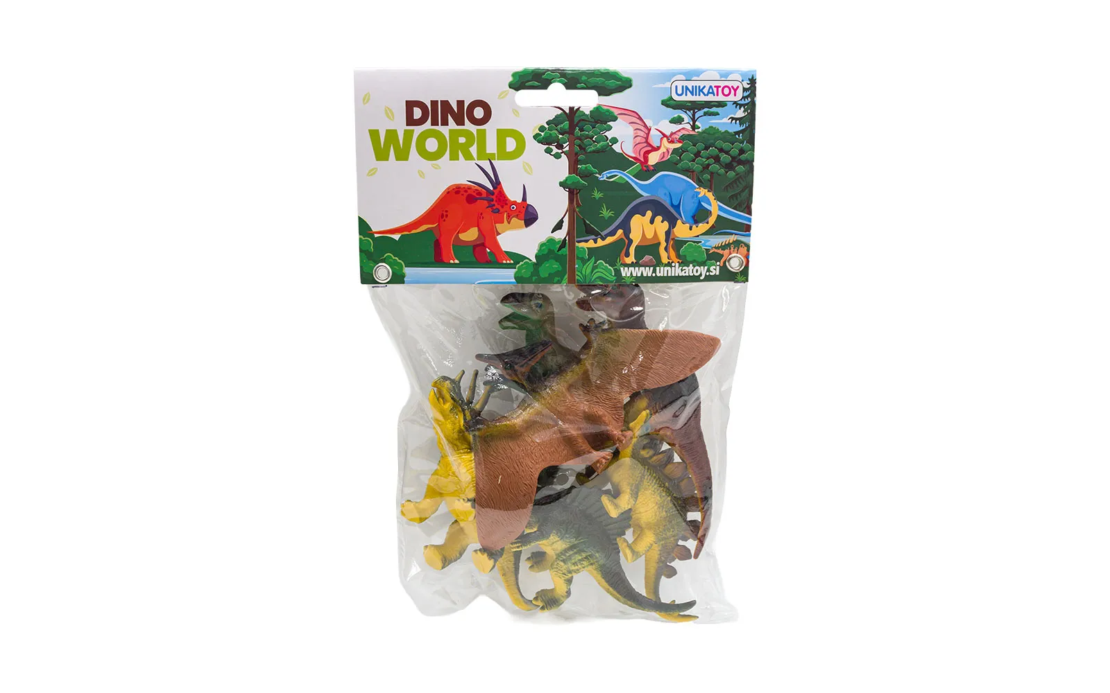 Raznoliki dinosauri vode te u svijet mašte prapovijesti. U vrećici se nalazi 6 različitih dinosaurusa po obliku i boji. Za djecu od 3. godine starosti nadalje.