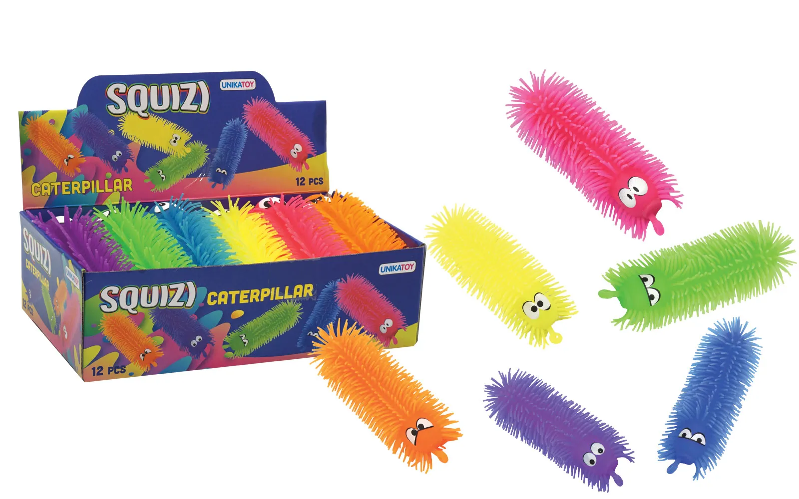 Za skupnu igru brinu se Squiziji Unikatoy baloni gusjenica s svjetlom, veličine 23 centimetra. Balon također ima viseći konopac. Dostupno u 6 boja.