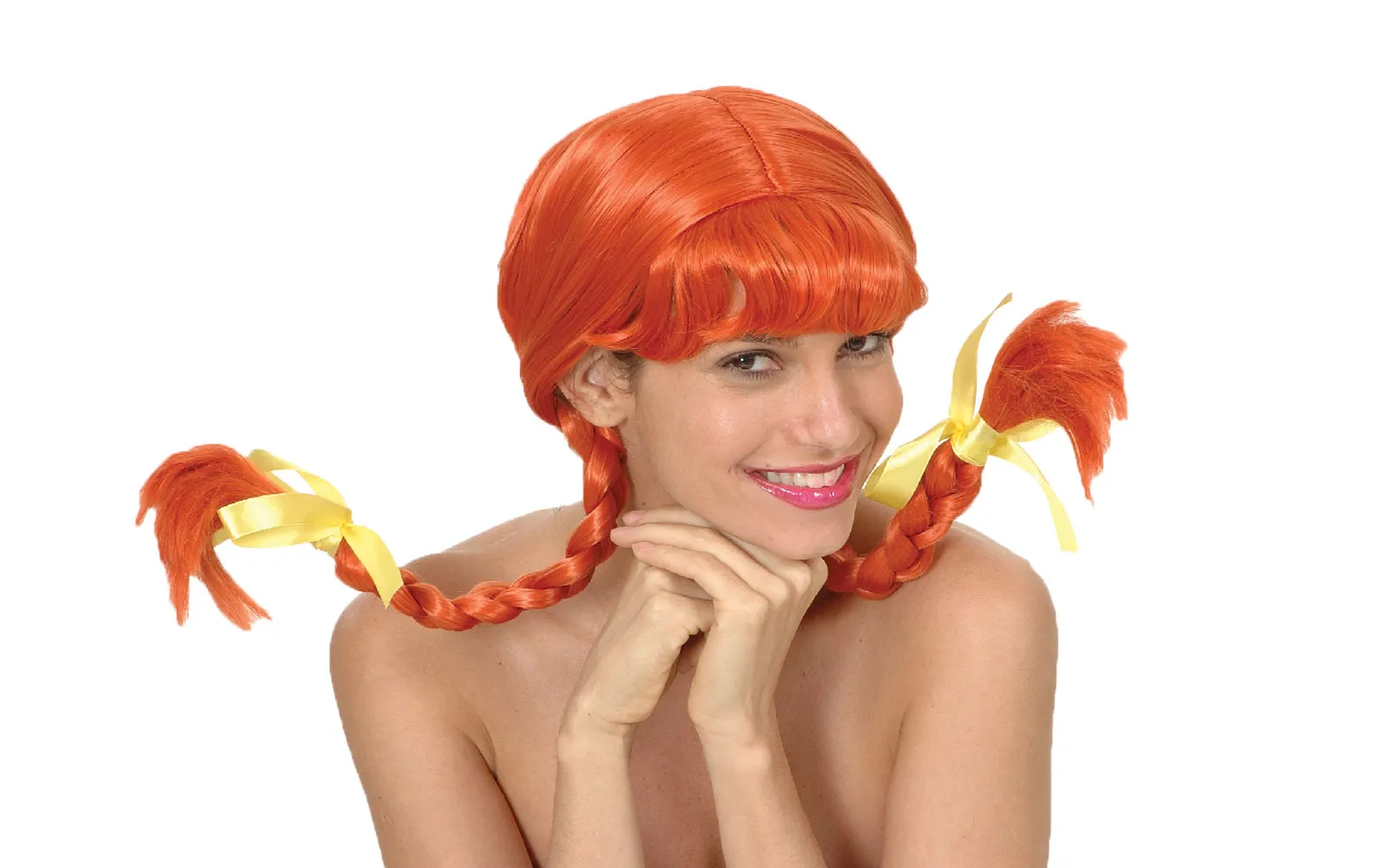 Da bi tvoja nestašnost još više došla do izraza, stavi karnevalsku periku narančaste boje s ukrasnim dijelom i dvjema pletenicama. Sastav: 100% POLIESTER