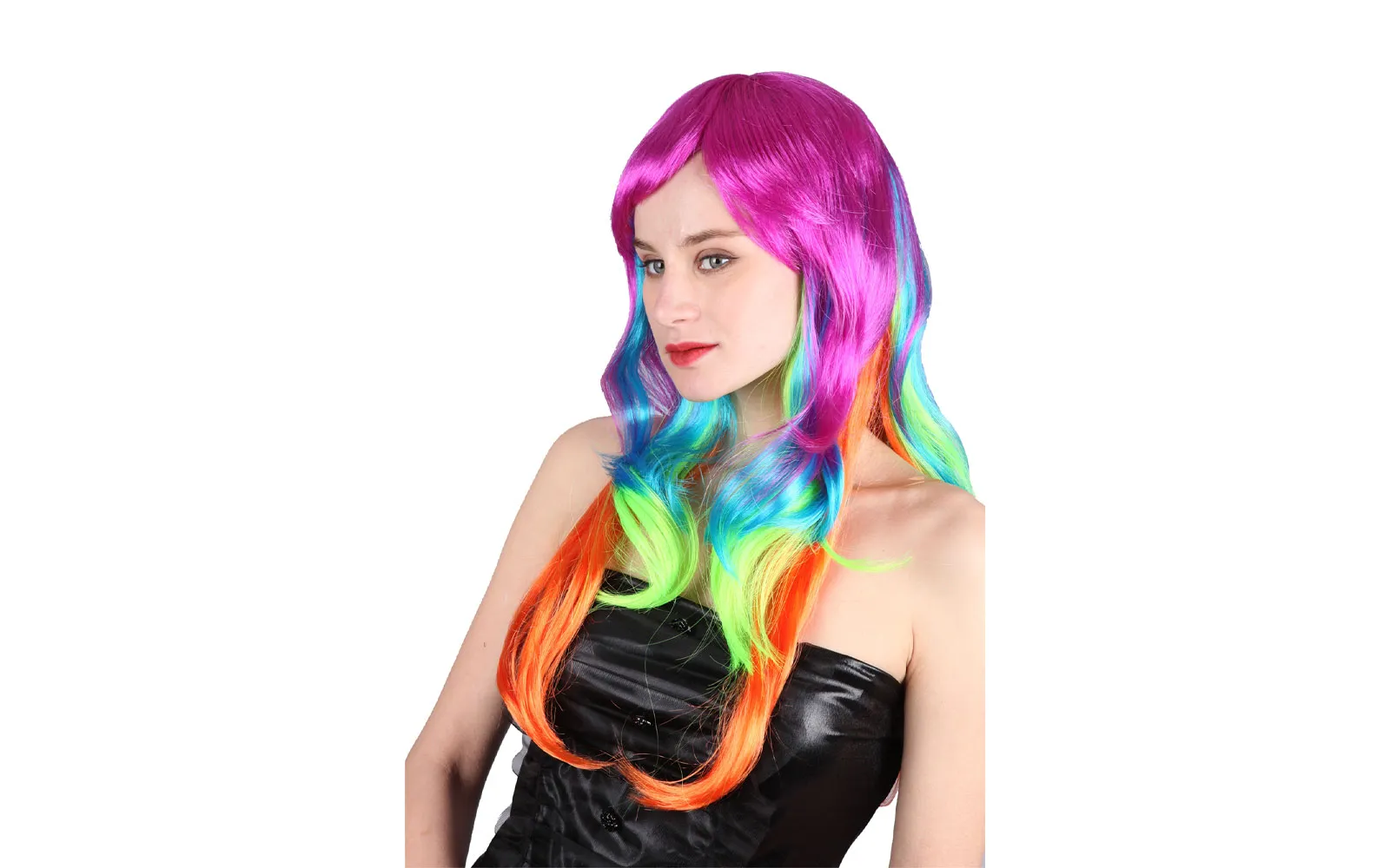 Duga perika intenzivne ljubičaste, plave, zelene i narančaste boje je savršena za ludu i nezaboravnu zabavu. Sastav materijala: 100% poliester.