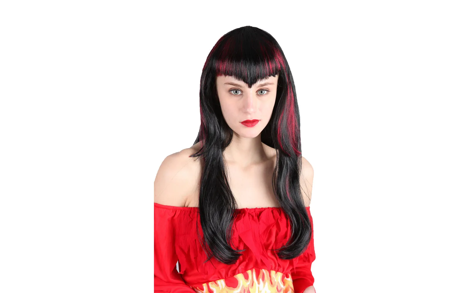 Dodaj dugoj vlasulji boje crveno-crne uz kostim vragice. Sastav: 100% POLIESTER