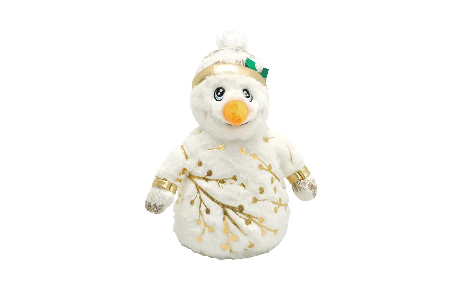 Snjegović je veličine 23 centimetra i bijele boje. Ima toplu kapu, osmijeh i okrugle gumbe te prekrasne zlatne detalje koji mu daju praznični sjaj. Snjegović je na dodir iznimno mekan, stoga će biti savršen pratitelj za zimske dane i praznično uređenje vašeg doma!