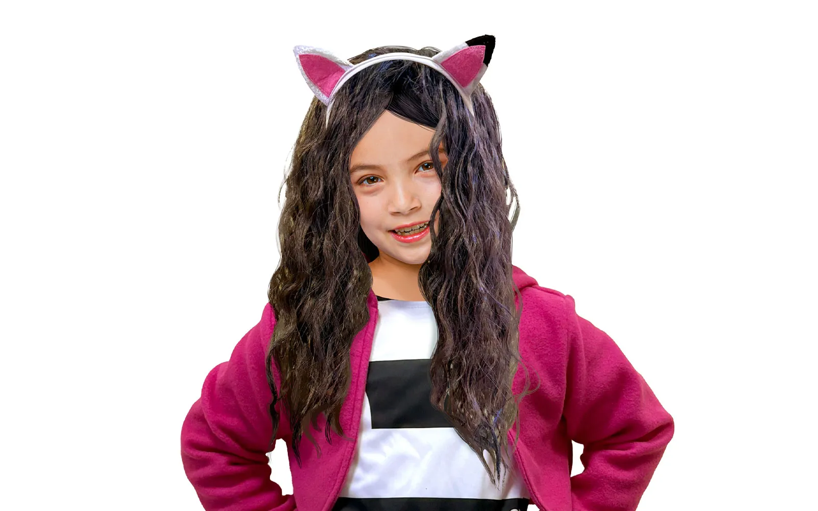 Kovrčava crna perika, Cat. Stavite ovu očaravajuću dječju kovrčavu crnu periku i zasjajte kao prava karnevalska maska.