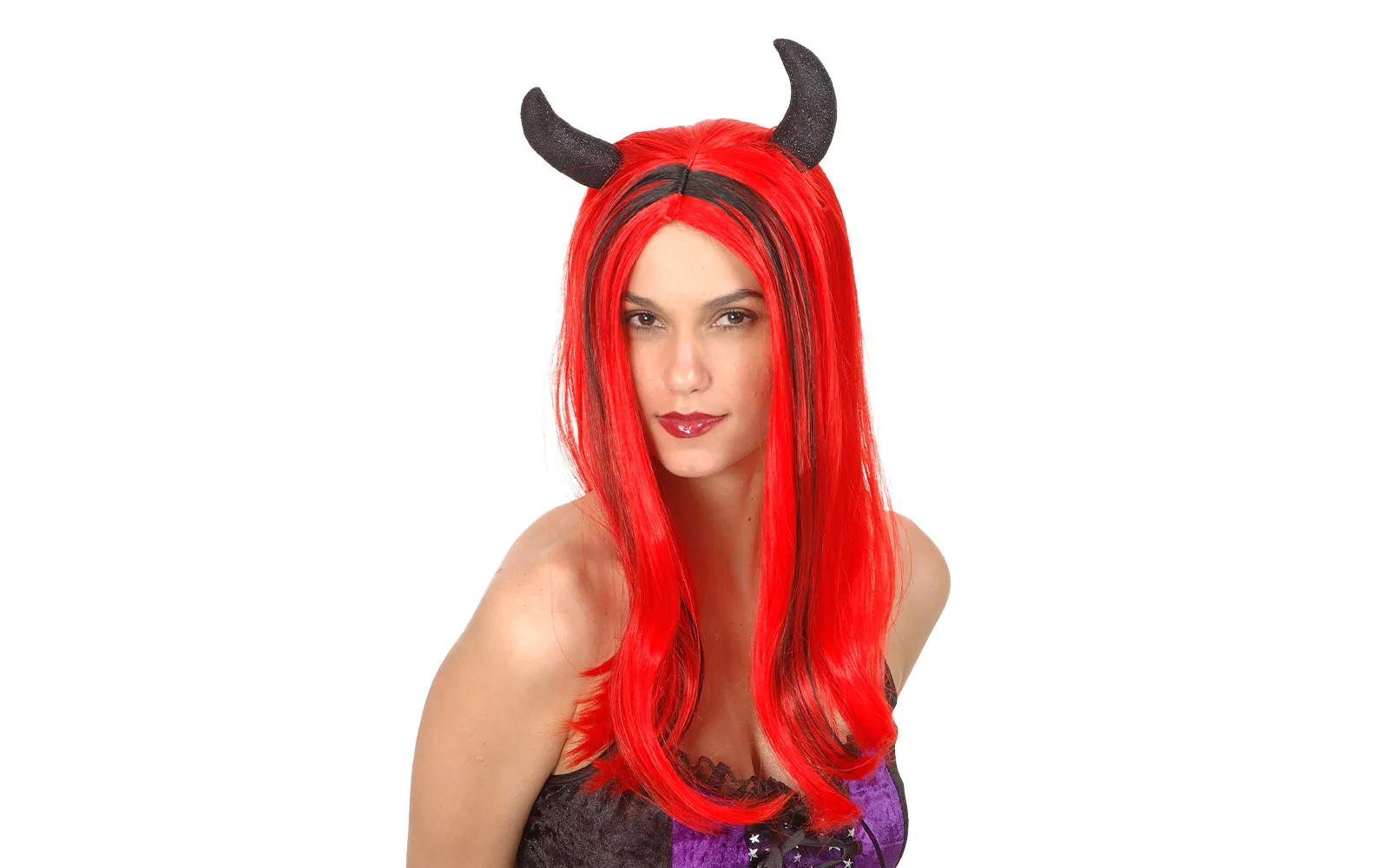 Poboljšajte svoj đavolski izgled ovom crveno-crnom perikom! Dramatična kombinacija boja i stilizirani oblik s rogovima osiguravaju pravu paklensku transformaciju - idealan izbor za karneval, Noć vještica ili tematske zabave. Perika je udobna za nošenje i odgovara većini odraslih. Perika ima ušivene đavolske rogove.