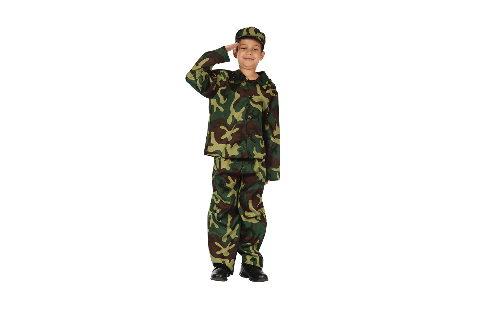 Realistični kostim vojnika, prikladan za karnevalske zabave i vojne tematske događaje. Uključuje vojnu uniformu s kapom koja naglašava vojni stil i funkcionalnost. Veličine S(110-120 CM), M(120-130 CM) te L (130-140 CM).