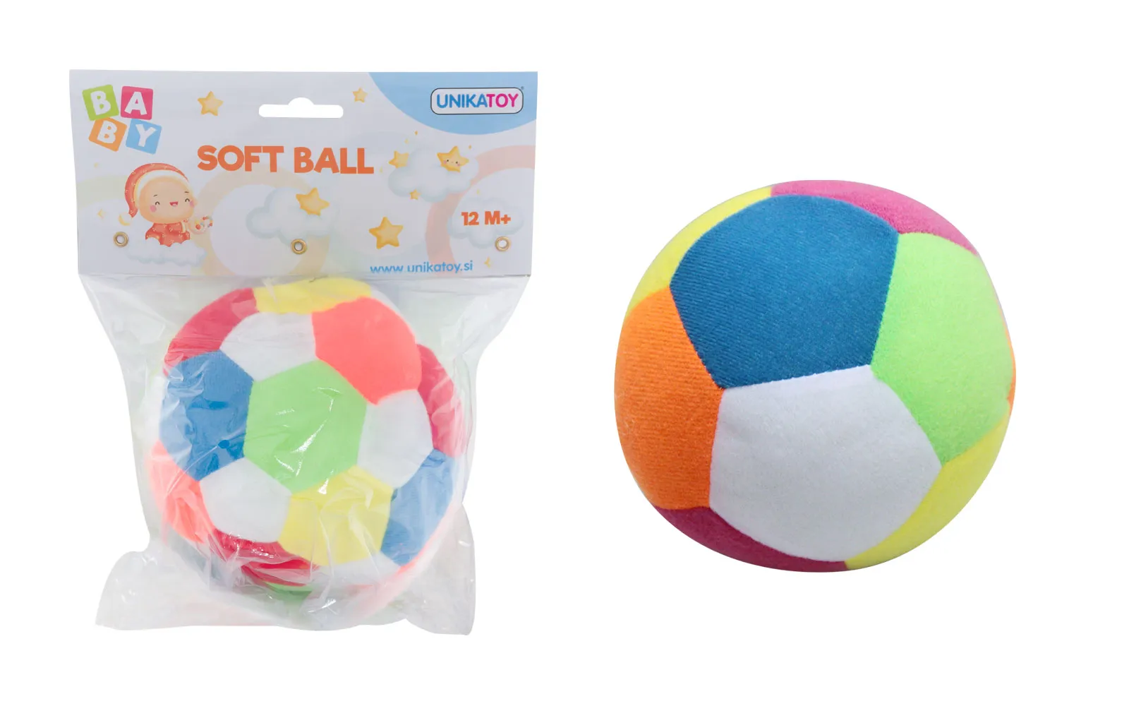 Baci i uhvati mekanu višebojnu lopticu od frotira veličine 13 cm.