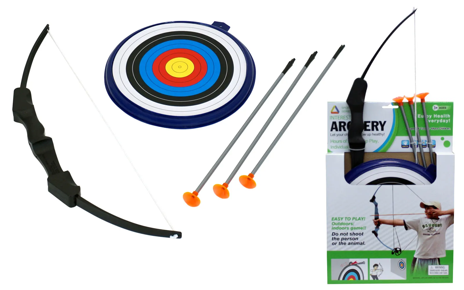 Napnite luk sa strijelom te ju usmjerite u sredinu mete. Komplet sadrži luk, 3 strijele i metu koja ima praktičan dodatak koji vam omogućuje ju objesite. Upozorenje! Ne streljajte u smjeru druge osobe ili životinja te u smjeru očiju ili lica.