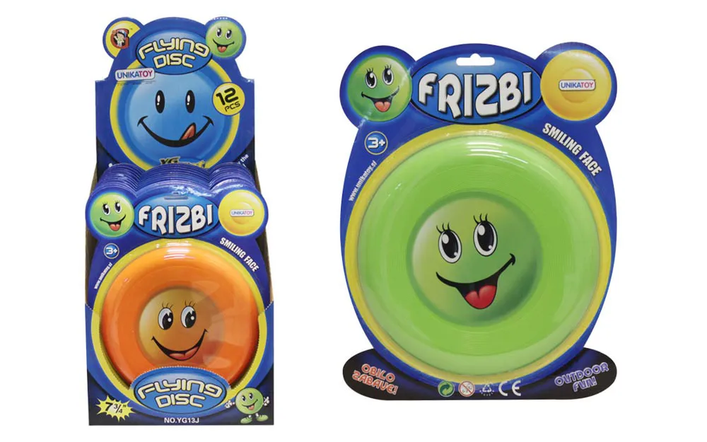 Za beskrajnu zabavu, tu je veseli Unikatoy frizbi promjera 20 centimetara, dostupan u crvenoj, žutoj, plavoj ili zelenoj boji.
