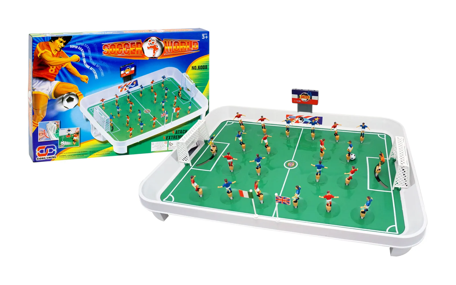 Nogomet, koji postavljate na stol ili ravnu površinu, namijenjen je igri za dva igrača. Nogometaši oba tima stoje svaki na svojoj opruzi, koju igrači pomiču ovisno o položaju lopte. Cilj igre je postići ili obraniti što više golova.