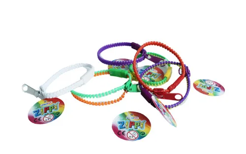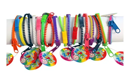 Ludo zabavne, izuzetno korisne su narukvice zippy duge 20 cm sa zatvaračem. Zippy narukvice u devet jednobojnih ili devet dvobojnih kombinacija mogu se staviti oko ruke, od njih možete napraviti lanac i staviti ga oko vrata, mogu se koristiti kao privjesak za ključeve. Ukratko, načina upotrebe je mnogo, odluka je na vama.