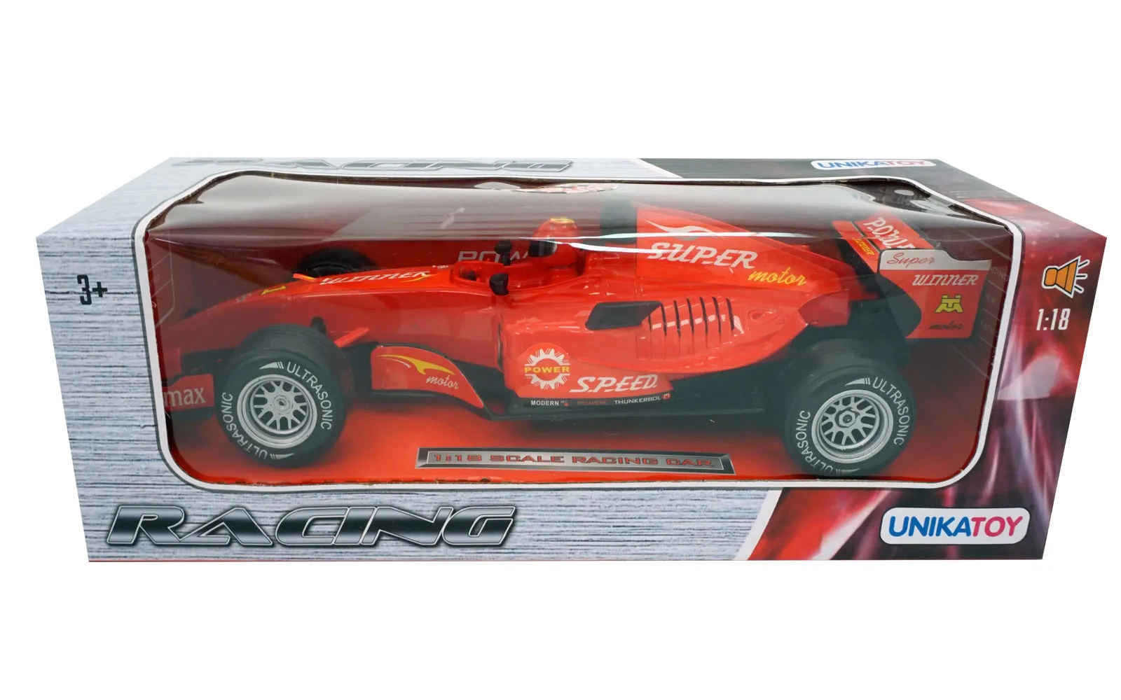 Crvena, plava ili srebrna formula sa zvukom veličine 25 cm ima i vozača. Za rad treba 3 baterije tipa LR44 1.5 V, koje su priložene u demonstracijske svrhe.