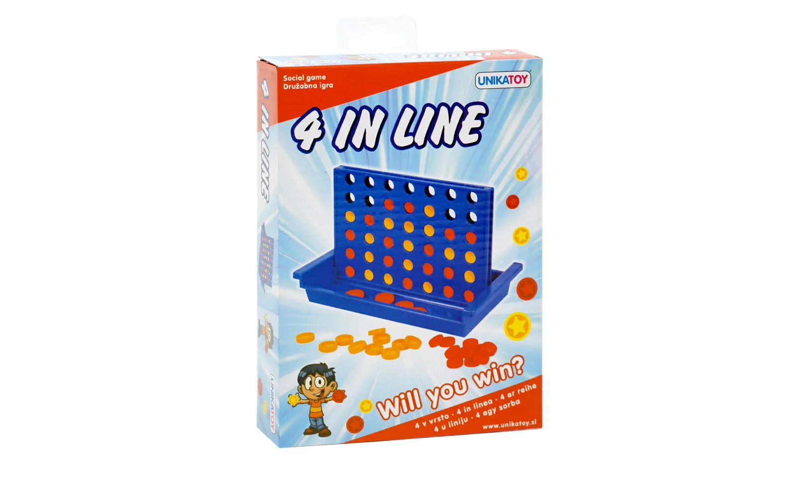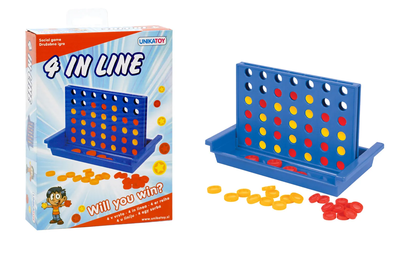 Četiri vodoravno, četiri okomito i četiri dijagonalno - naravno u nizu. Društvena igra namijenjena je za dva igrača. Prvi igrač koji uspije postaviti 4 kružića u vodoravnu, okomitu ili dijagonalnu liniju, je pobjednik.