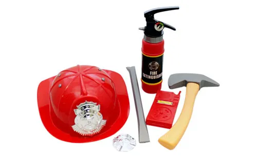 Za svu djecu koja se raduju vatrogascima, ovdje je set različitih vatrogasnih pomagala s priloženom vatrogasnom kacigom.