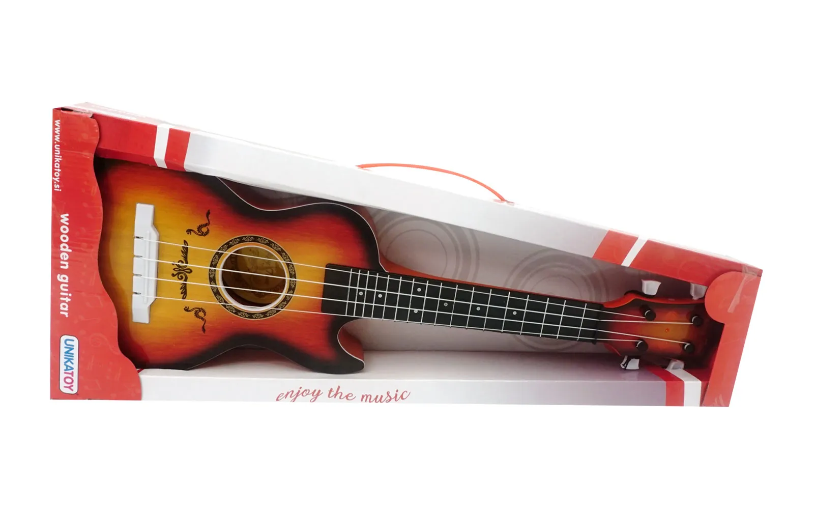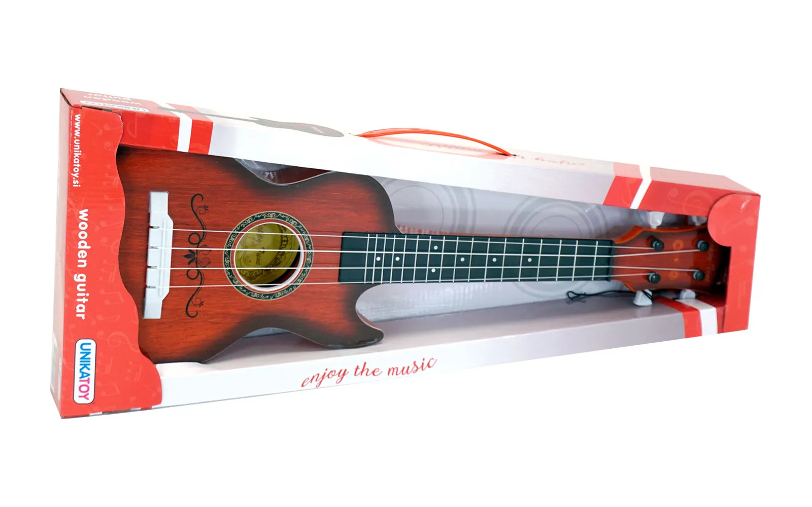 Sviraj na klasičnoj gitari koja ima 4 žice. Na izboru su tri različite boje veličine 57 cm. Da bi igra bila još zabavnija, možeš uz to i pjevati. Za djecu od 3. godine starosti nadalje.